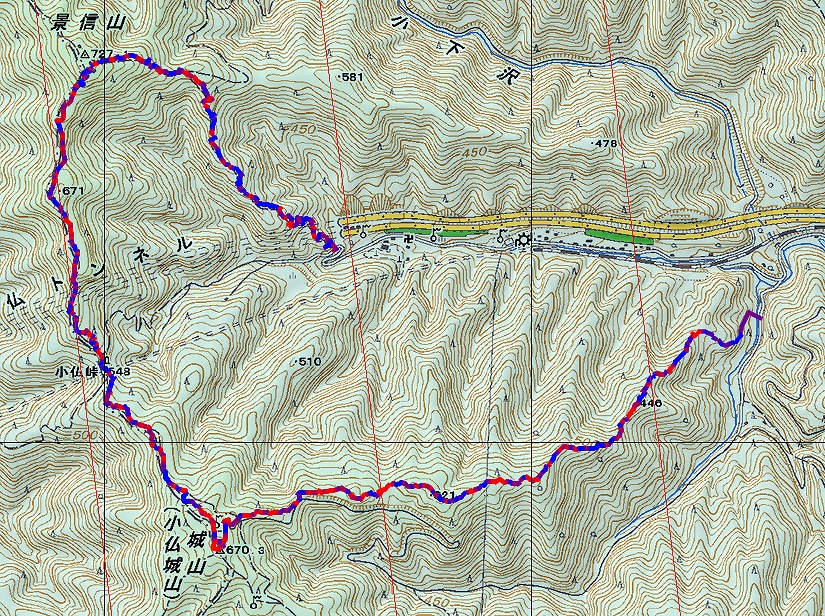 ▼コース: 日影バス停9:00→小仏城山10:30~40→景信山(昼食)11:30~12:05→小仏バス停12:50~13:00=高尾駅北口