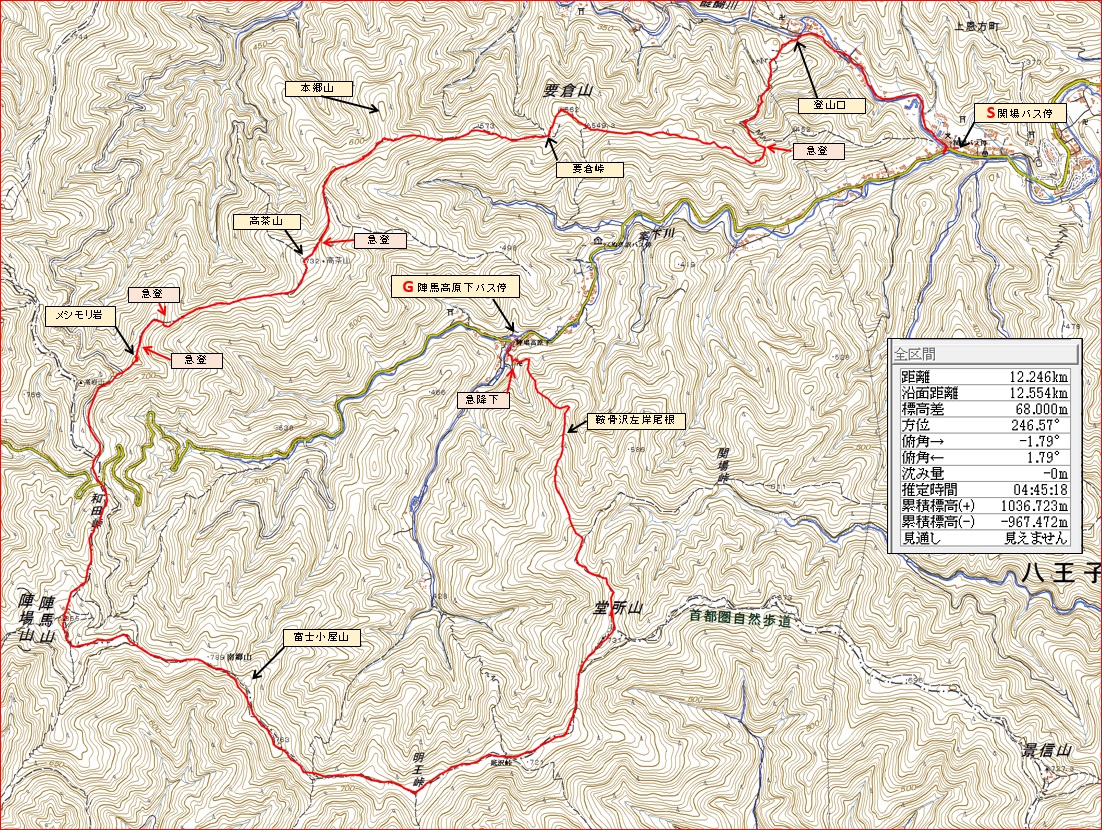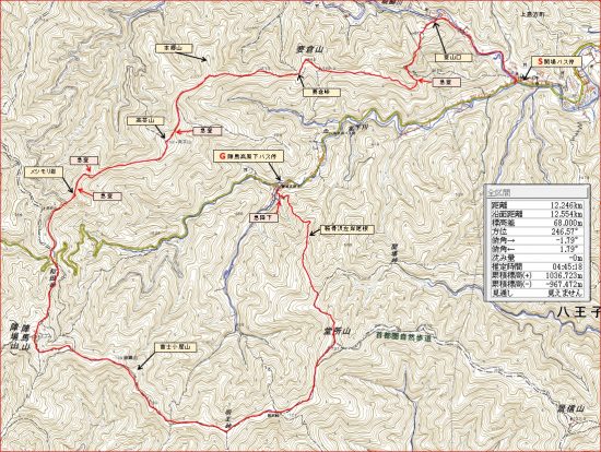 コース :高尾駅北口7:35-(バス)-8:00関場8:10-要倉山登山口8:25-9:40要倉山