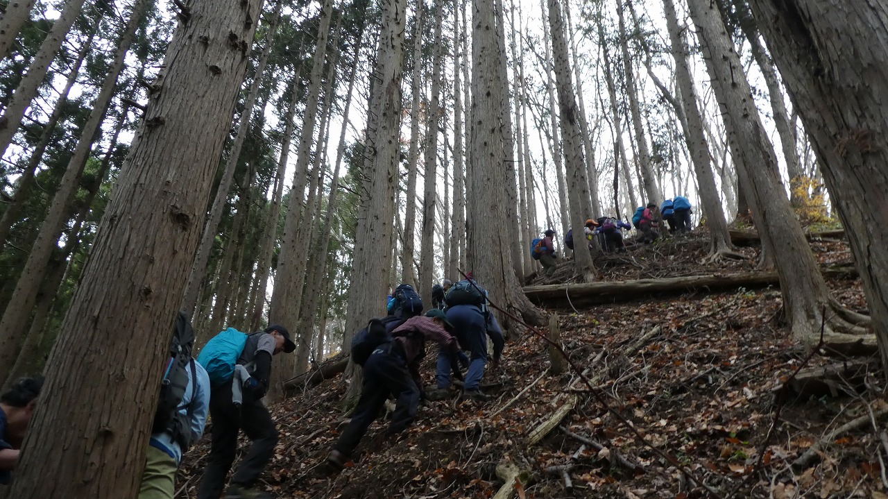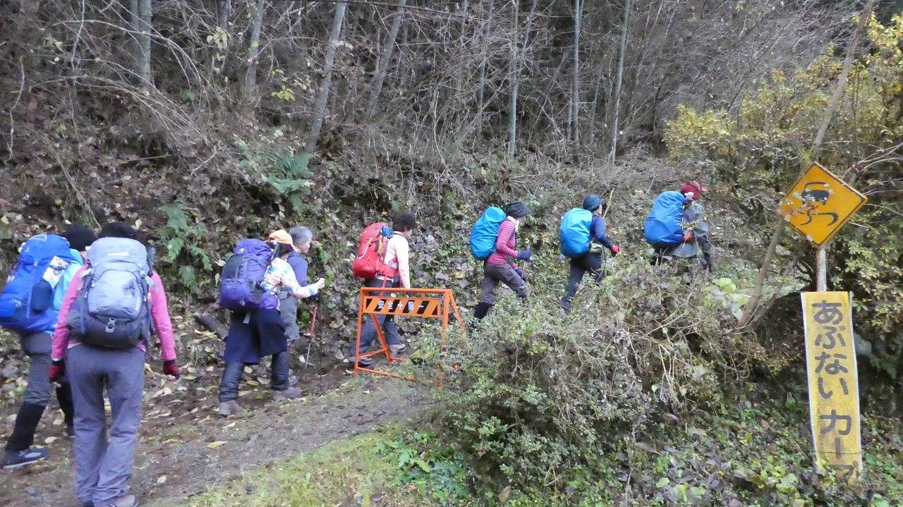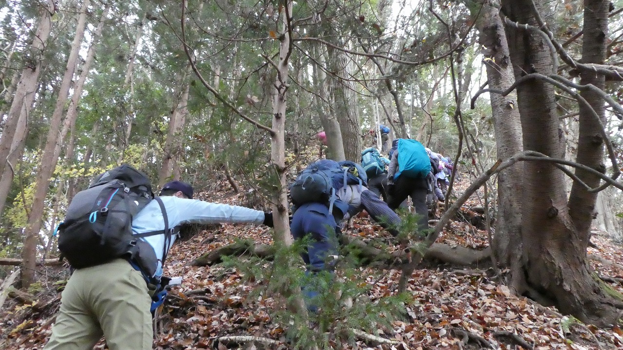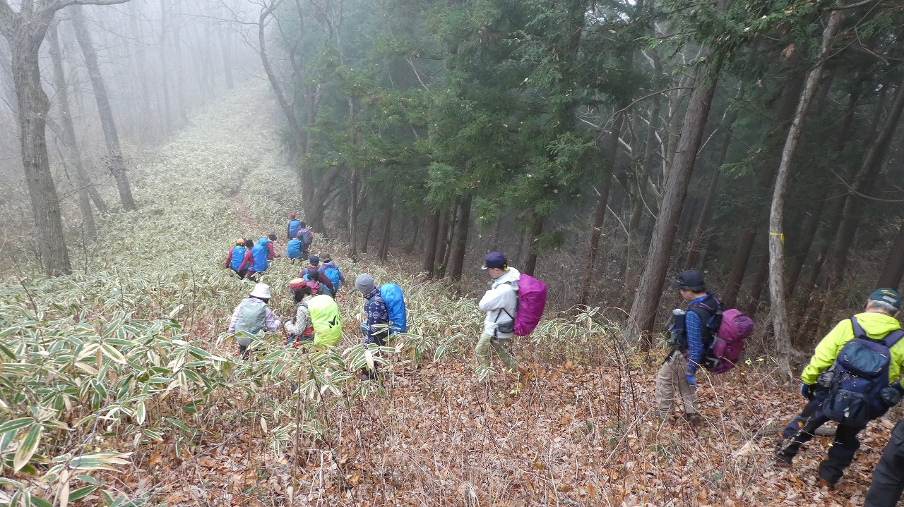 「予報が外れ、寒い一日となりましたが、坂寄L始め、会員方々のご協力を頂いて予定通りに歩き通せました。どんな時でも明るい山行にしてくださる皆様に助けられて、今年も終わります。ありがとうござ