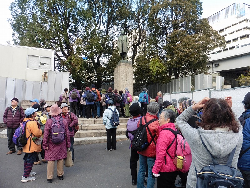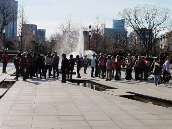 東京駅丸の内中央口(10:30)→皇居外苑→和田倉噴水公園→ホトリア広場(11:00)→平将門首塚→東京消防庁(11:25~12:25)食堂・昼食→大手町川端緑道→神田橋→日本銀行本店→貨幣博物館(13:40~14:15)→渋沢栄一像(14:20)解散→東京駅八重洲口