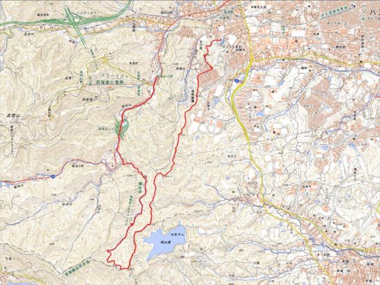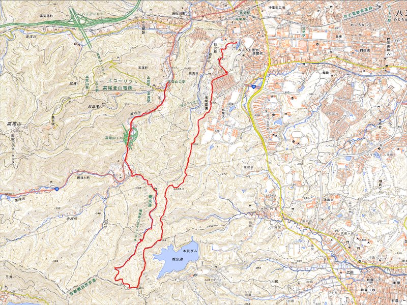 高尾山口駅から「高尾山インター」に向います。 「梅ノ木橋」で左折。