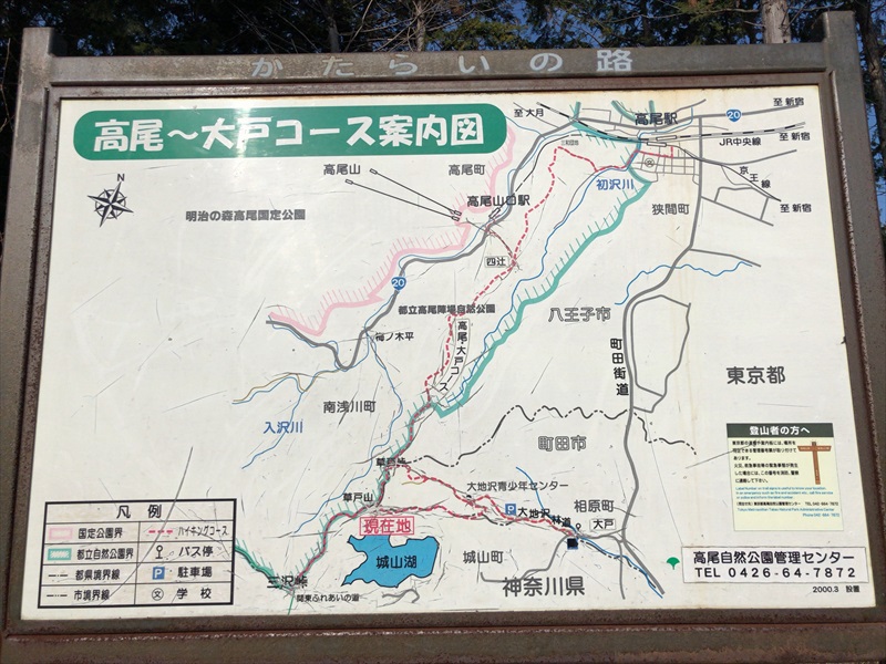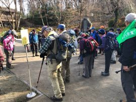 ▼コース: 高尾山口駅8:50→梅ノ木平9:20 →三沢峠10:25→ 草戸山11:00(昼食)11:40→草戸峠11:50→八方台12:06→高泰台12:50→初沢山13:15→高尾天神社13:35→みころも霊堂13:40(解散)⇒高尾駅