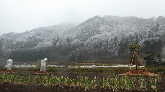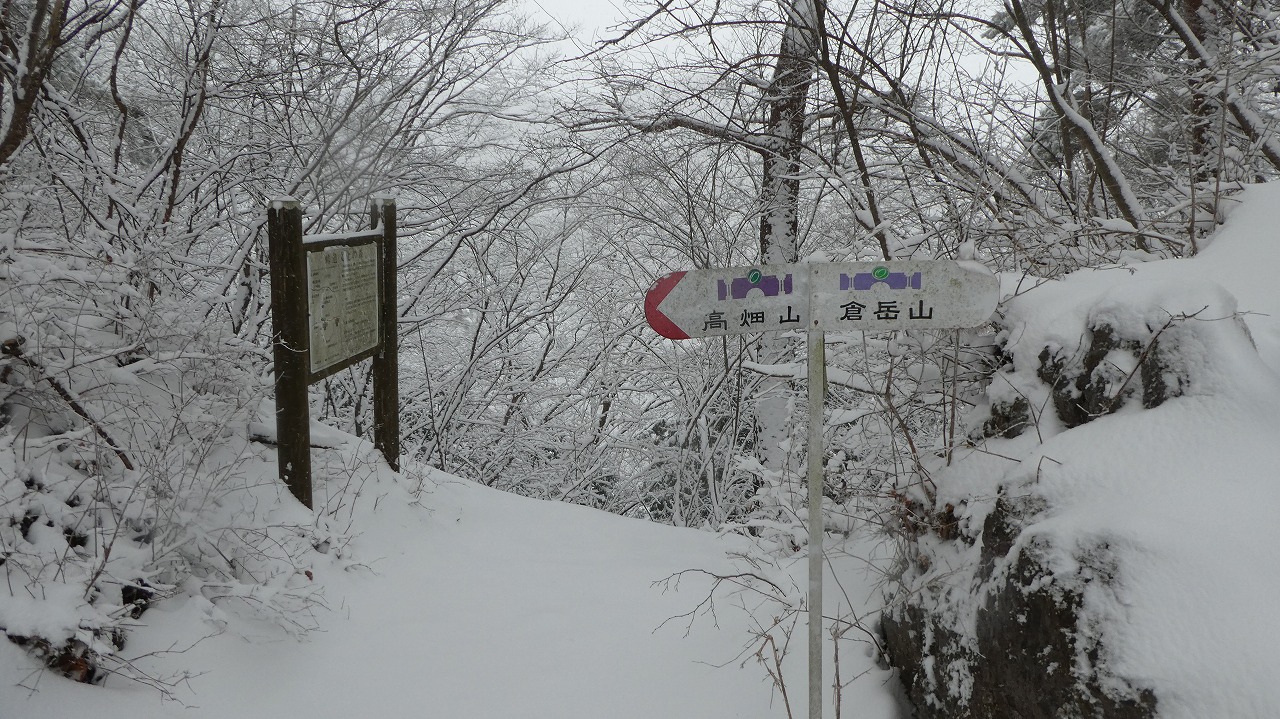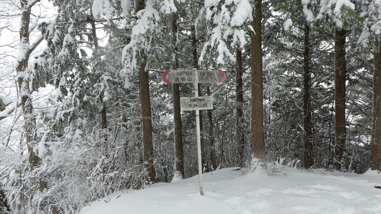 雪舞う倉岳山山頂