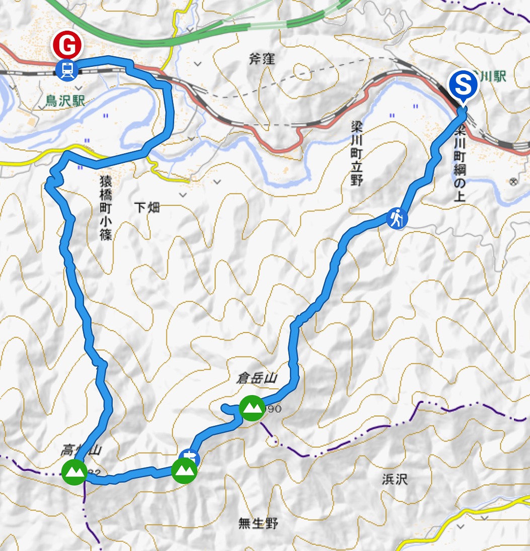 倉岳山北東尾根~高畑山北尾根ルート図