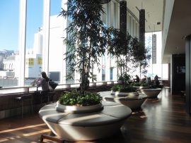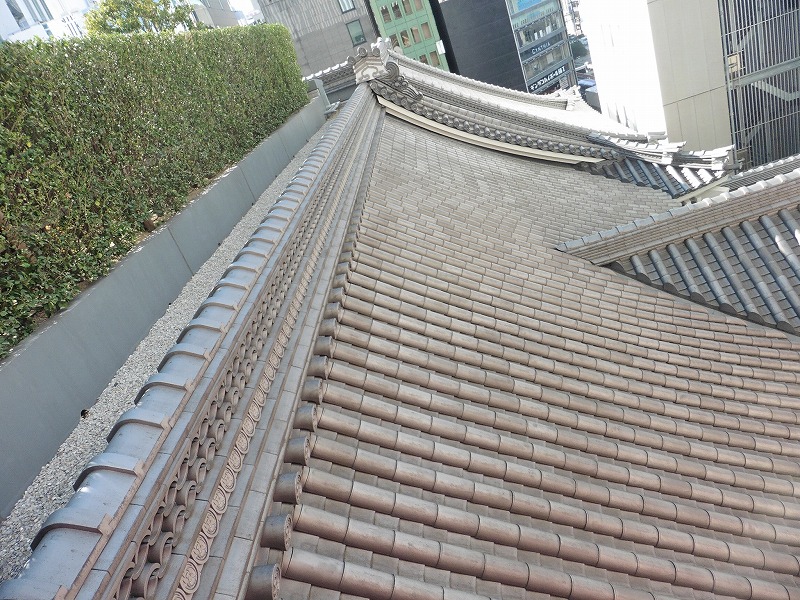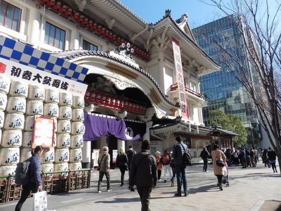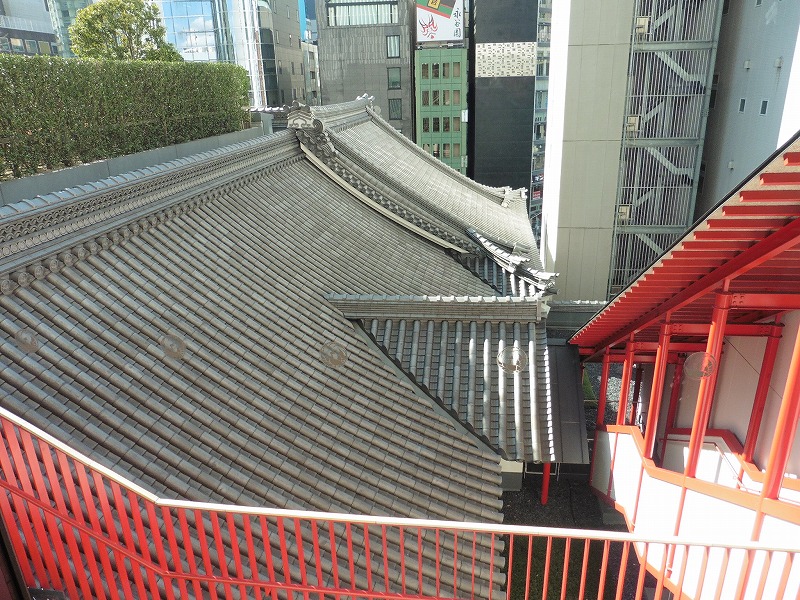 <この階段は、南禅寺山門での石川五右衛門の有名なセリフ「絶景かな、絶景かな」のシーンを思い起こさせる歌舞伎座の大屋根を、最も美しく鑑賞できるよう設計されたのだとか>