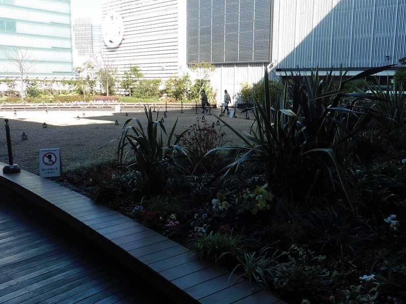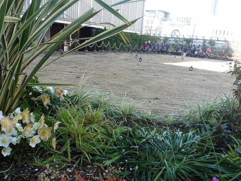 テラスガーデンはほぼ芝生のエリアとなっていて、周囲に散歩道が設けられています