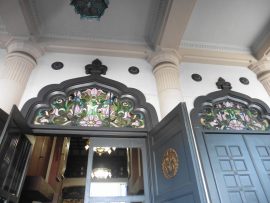 国姓爺合戦「ステンドグラス」 四階回廊 建物模型や俳優の肖像が展示