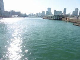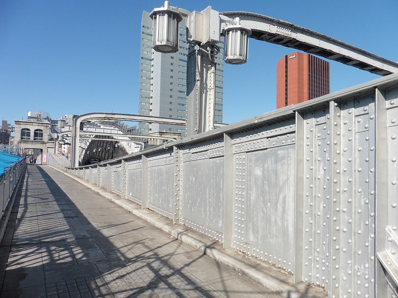 勝鬨橋 勝鬨橋のライトアップデザインのリニュアルと合わせて、光源をLED照明にすることにより環境や人にも優しい、工事中。