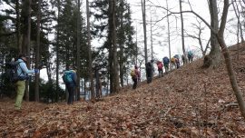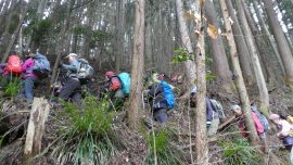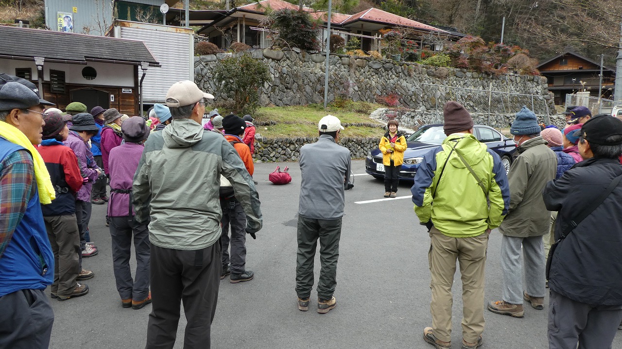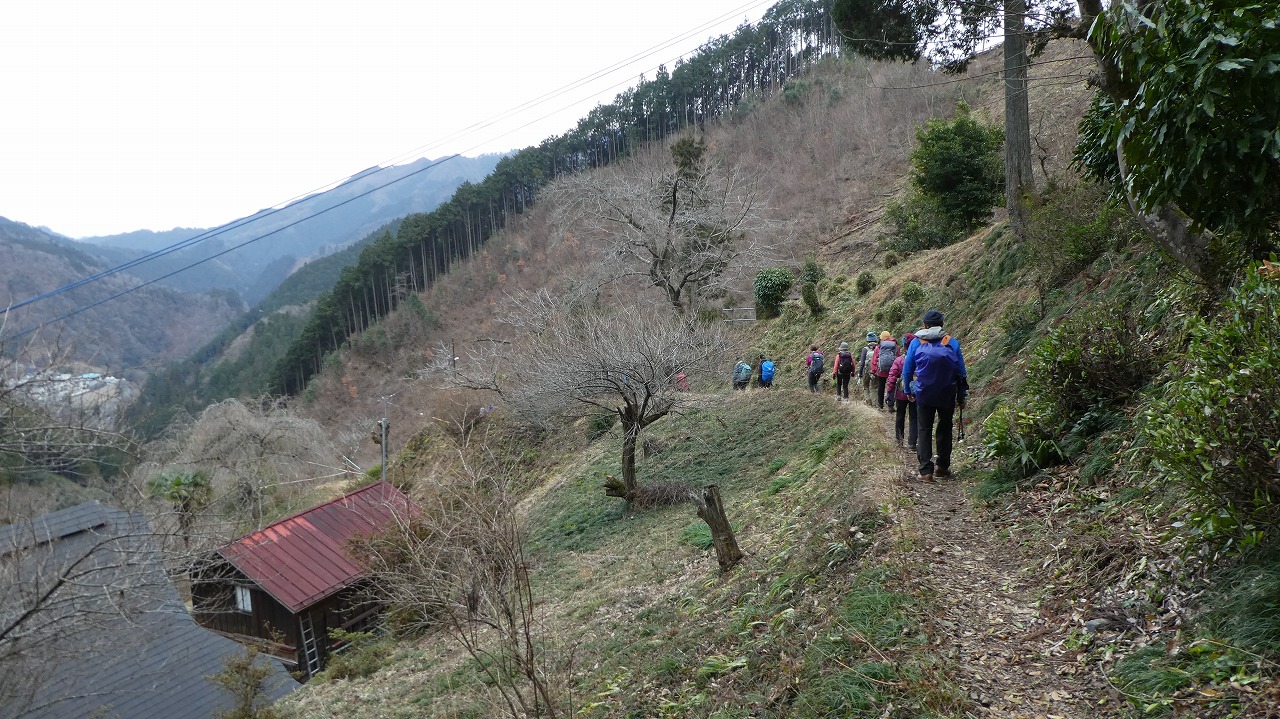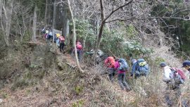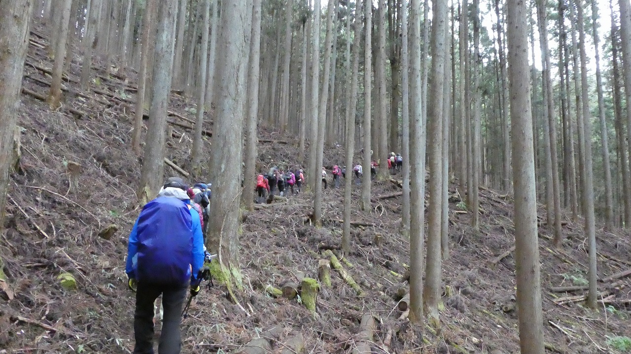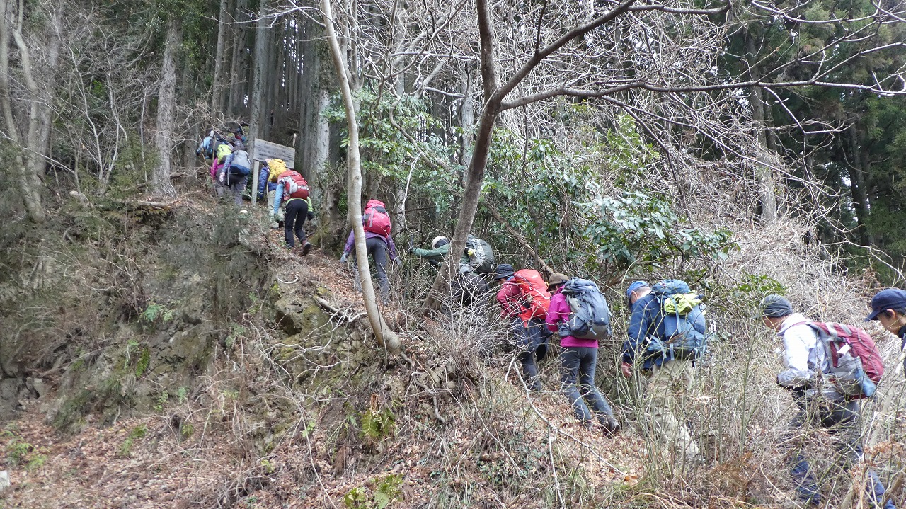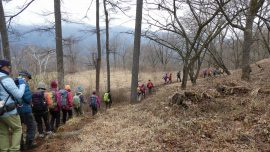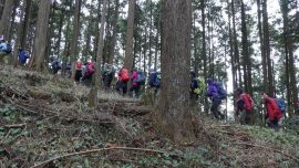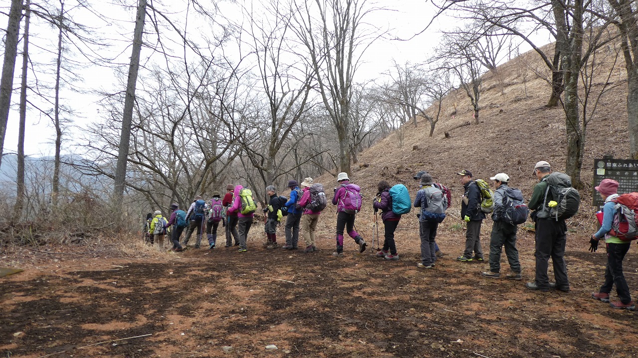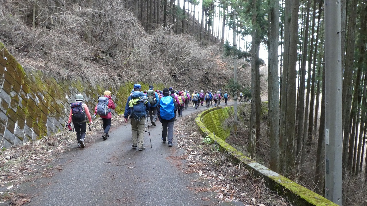 冬枯れの山道を行く45名