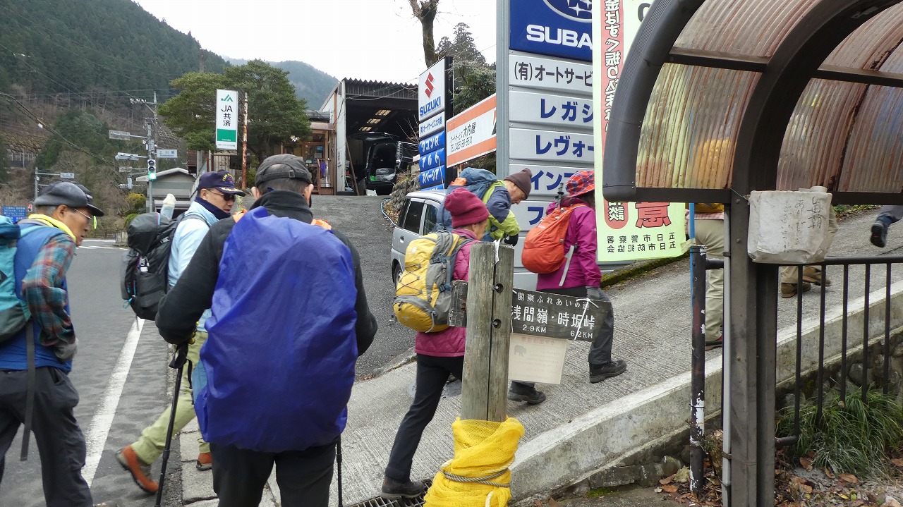 上川乗バス停 佐野L挨拶 出発