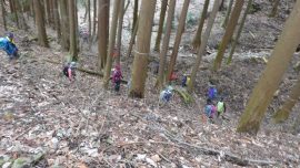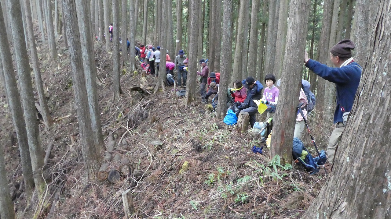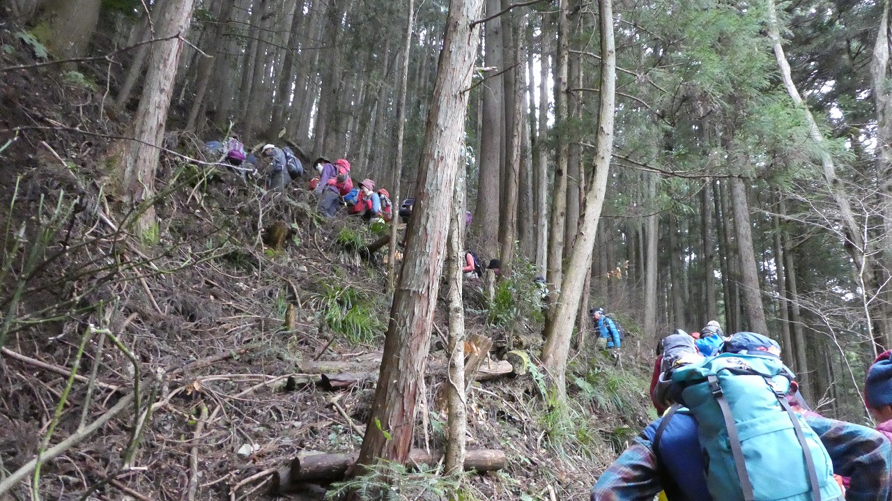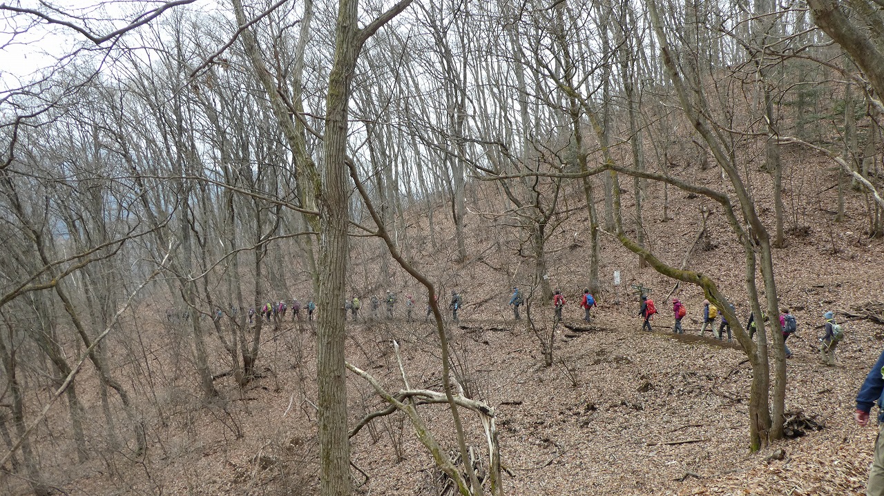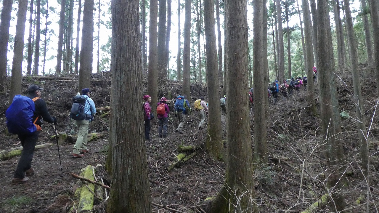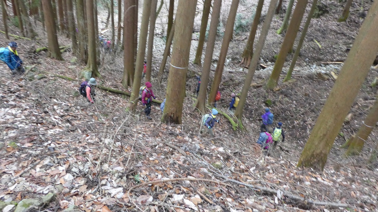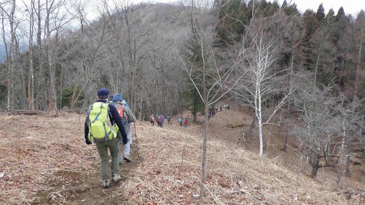大変登り易いルートで、冬枯れの森の中を気持ちよく歩けました。 45名の大パーティーがリーダー、協力者様に守れれて1列に登行する姿は圧巻です。 ついて行くのに必死で写真を撮れませんでしたが、アップされたルートに沿った臨場感ある写真で、当日の光景が甦ります。 お世話になりました。
