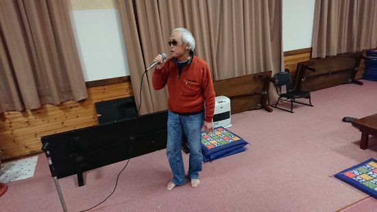 待ってました! 歌うはカラオケの帝王 (こしもと旅館大広間で)