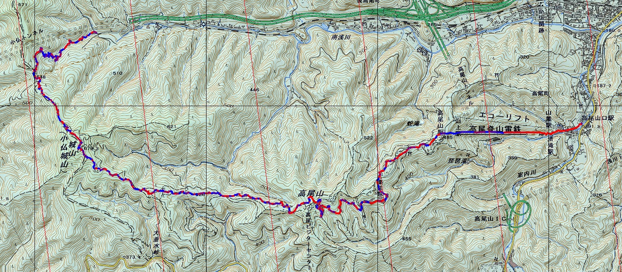 ▼コース:高尾山口駅前広場出発8:37=ケーブル→9:20山頂駅9:30→9:40薬王院→もみじ台→一丁平→11:30城山12:30→13:40登山口→13:50小仏バス停