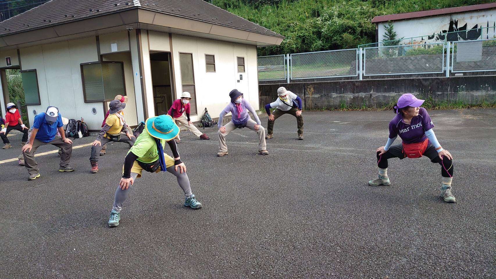佐々木Lのコロナ対策と東ハイの方針説明の後、小泉Lの指導でストレッチを行い、スタート!