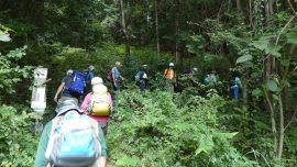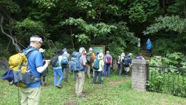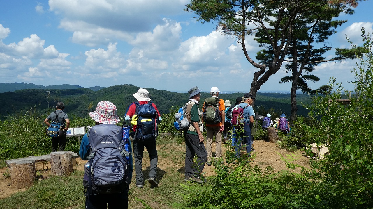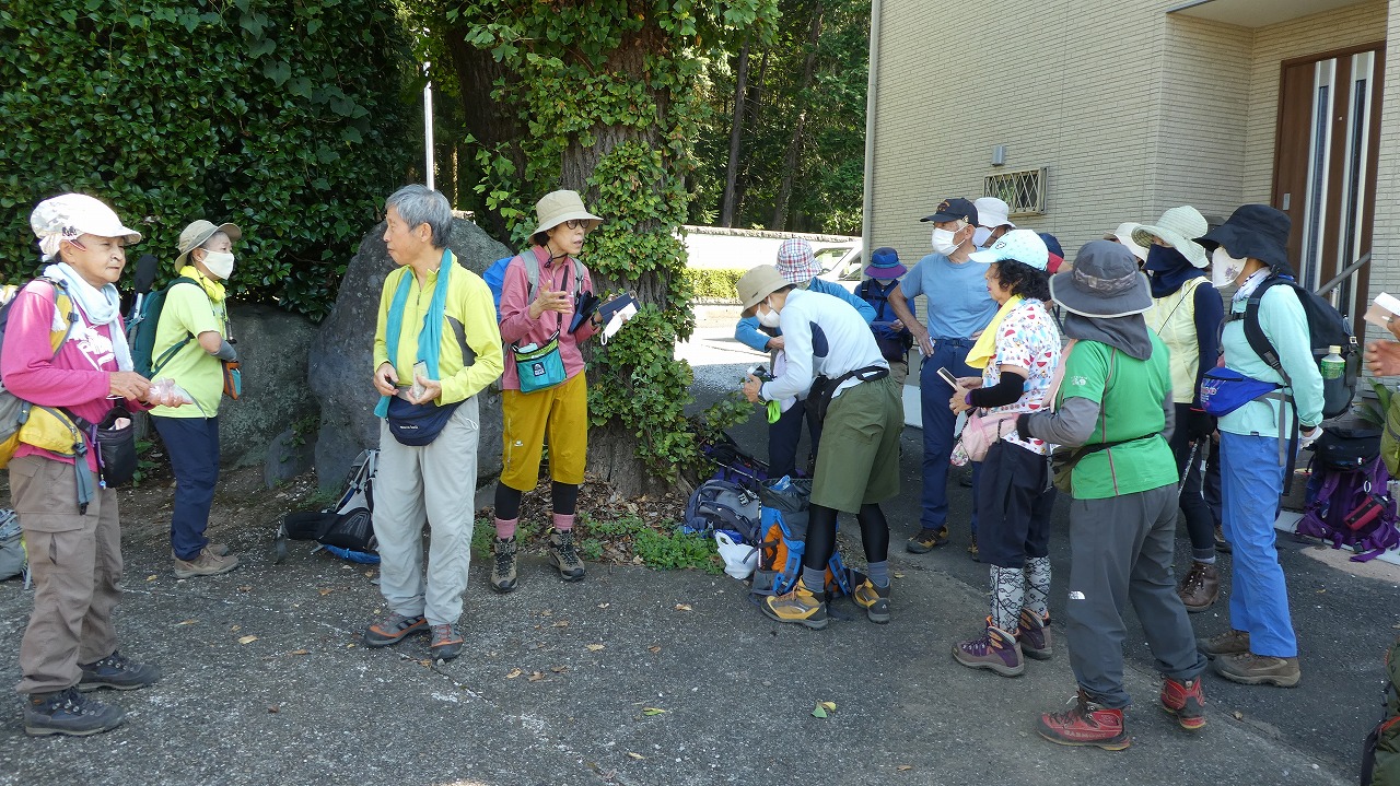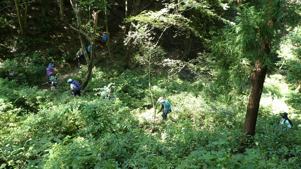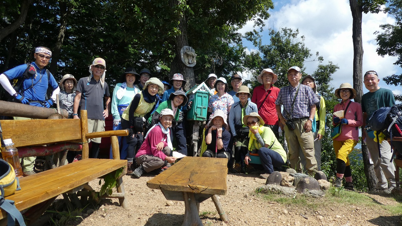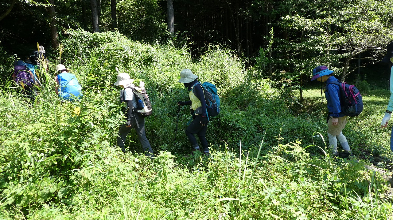 前日のの天気予報では、飯能地域は午前は32度越え、午後は雷雨。当日集合場所に行くと、あの顔、この顔、遠方から懐かしいお顔、皆さん酷暑と分かっていても歩きたいのです。その気持ちを察してかリーダーは、「今日は30分毎に水タイムを取り、空模様でその場のエスケープルートで下山します」、と明快な御挨拶に皆さんうなずいてました。