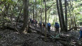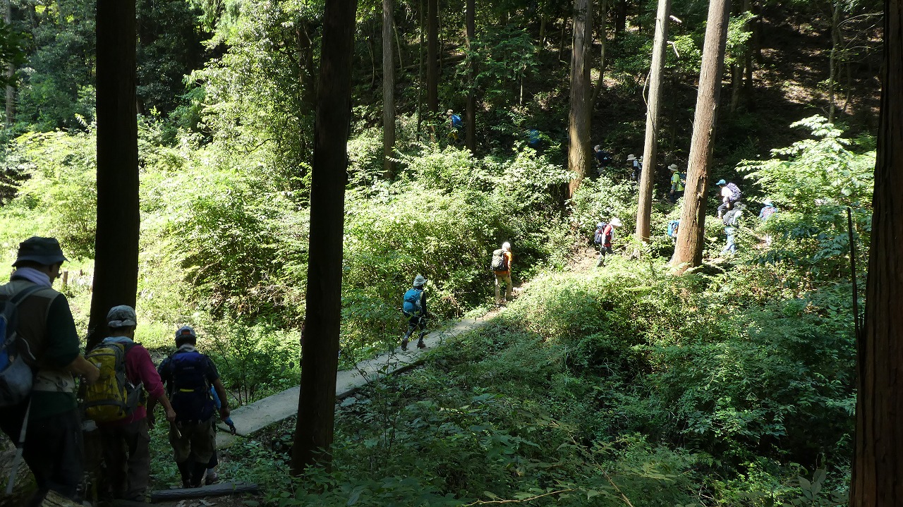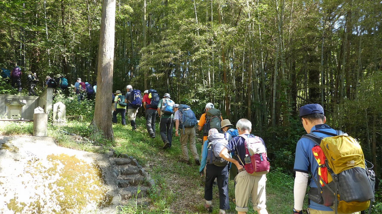 初秋だし、と再登場させたが猛暑の中での歩きとなった。殆どが樹林下だったため安心したが、道標も