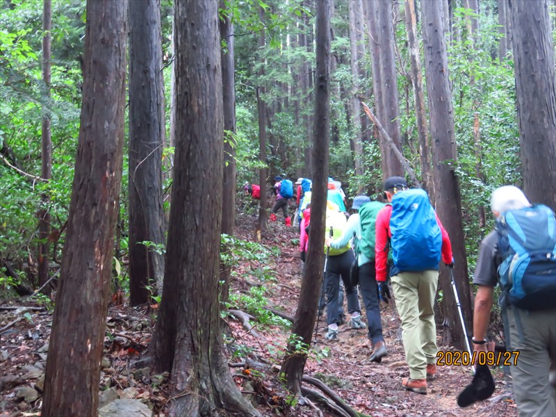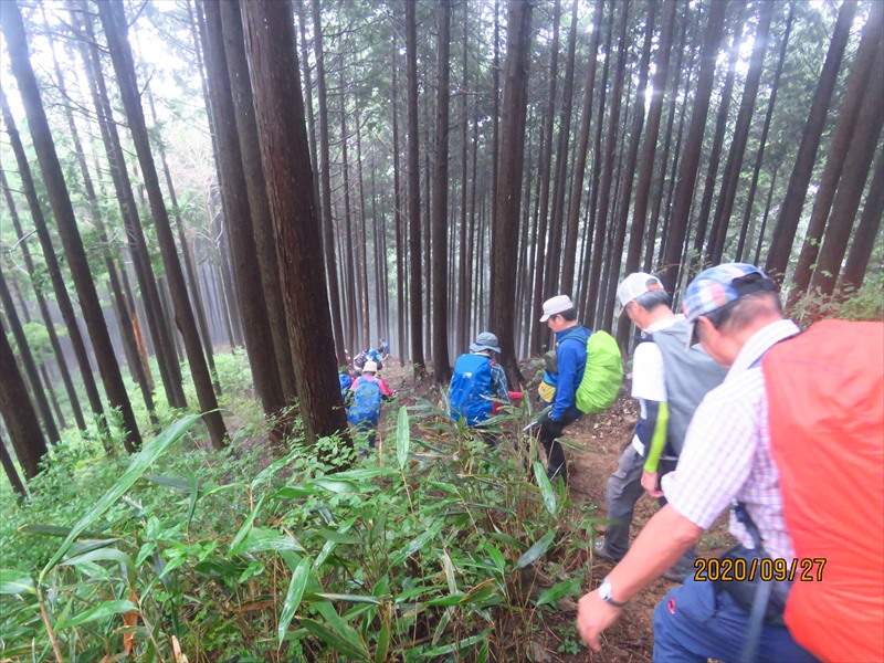濡れて滑りやすい登山道に気を付け・樹林帯に入れば薄暗かったりしたが 協力L 参加L 協力者など会員さん達のお陰で大きなアクシデントもなく無事に下山出来ました。感謝いたします お疲れ様でした。 小泉純子