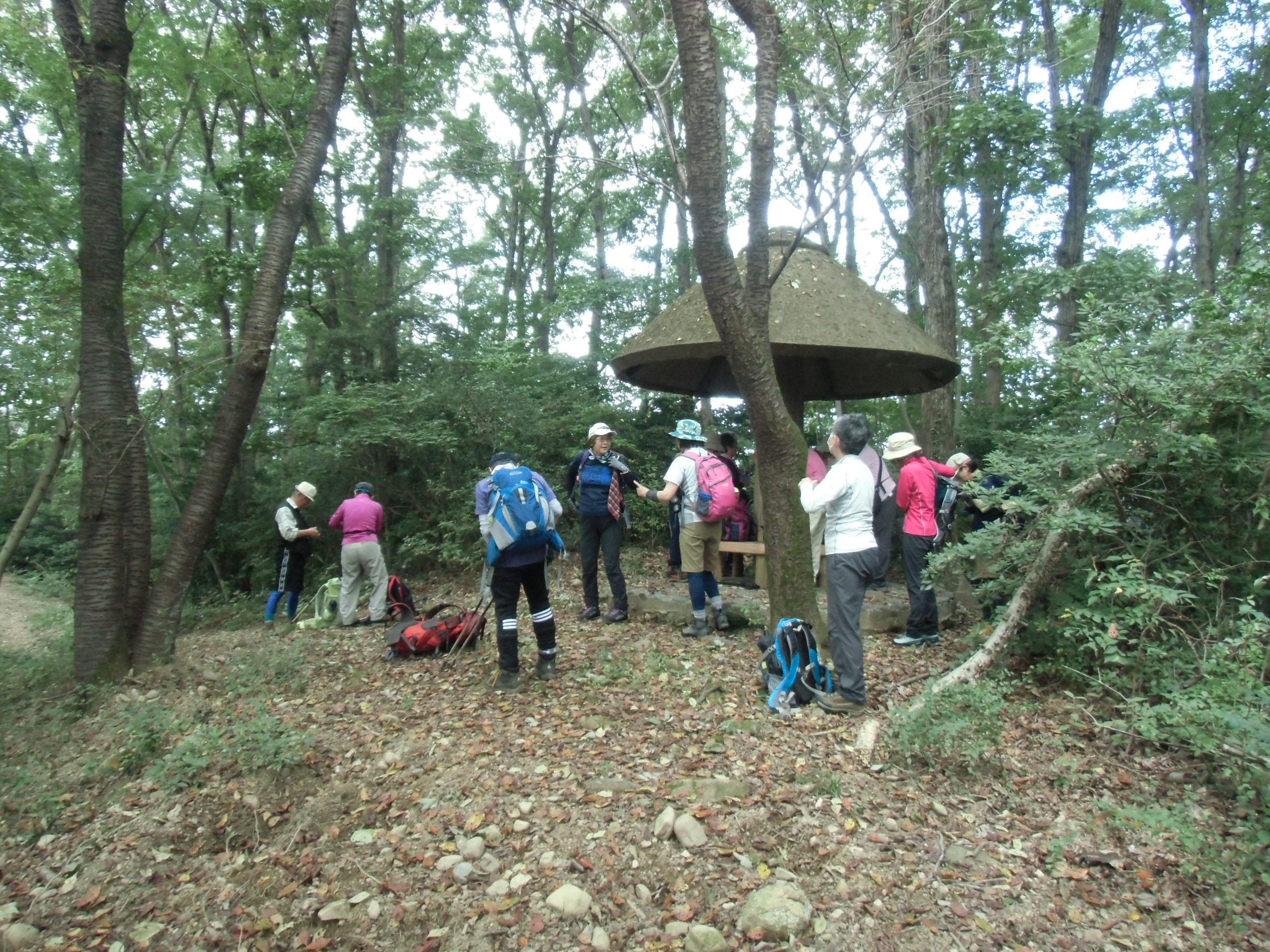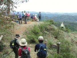 お疲れ様でした。前日の天気予報は秋晴れの快晴とはいきませんでしたが珍しいキノコなど植物にも出会え、爽やかな風を受け心地よい山行でした。長淵丘陵の登山道にも要害山の標識がありましたが要害山と名の付くピークは各地にあります・・・。要害とは? M.Tさんより「狼煙」場とのお話がありました様に地勢が険しく敵を防ぐのに適している所ということだそうです。