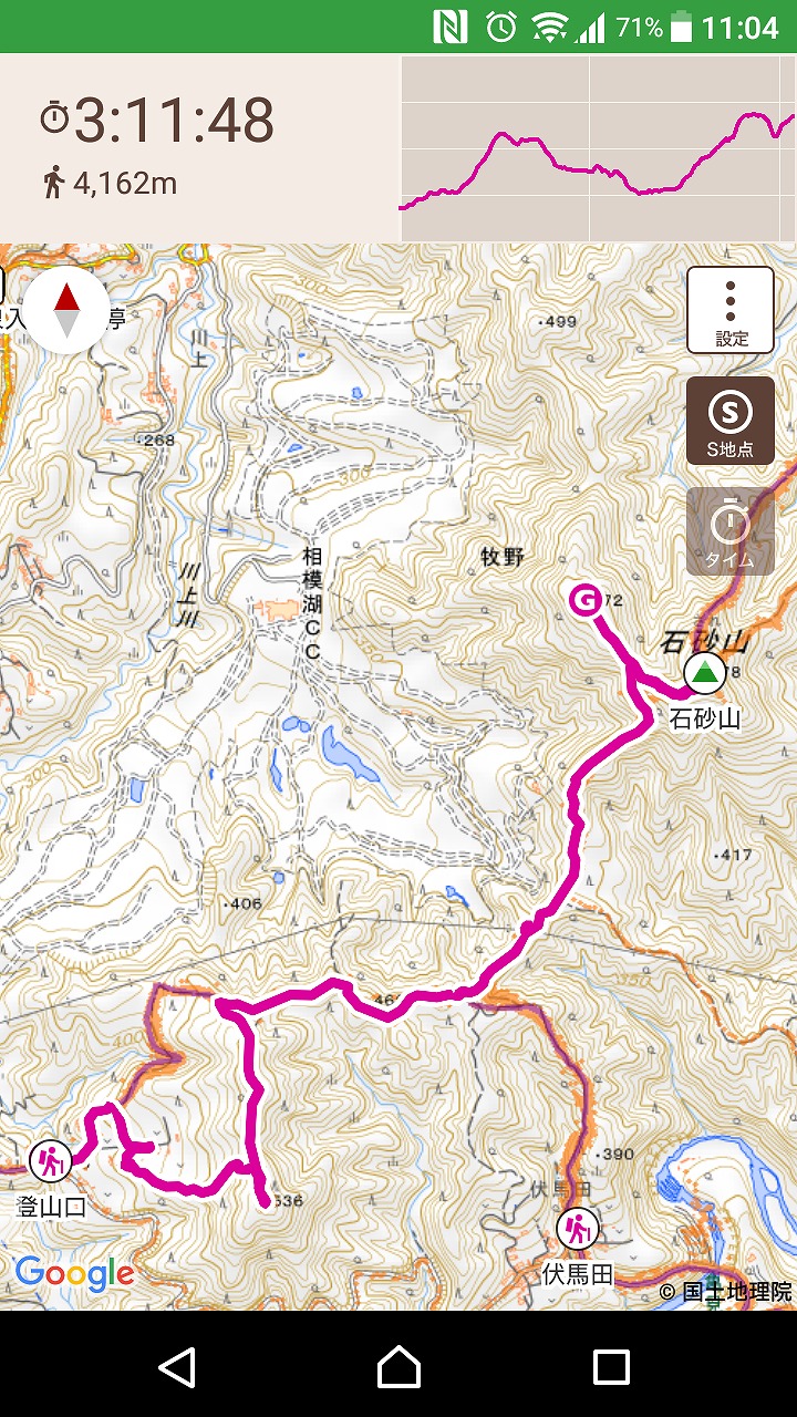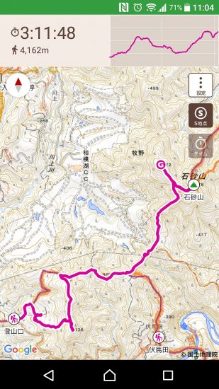 石砂山東峰11:20-11:40石砂山西峰572m(昼食)12:05-12:45川上ドッケ(499m)