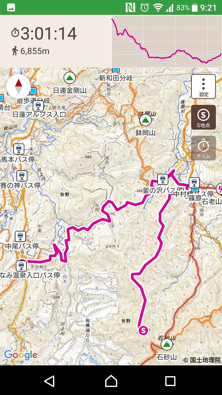 12:50ー14:00篠原地区14:20-やまなみ温泉バス停15:20-(バス)-藤野駅