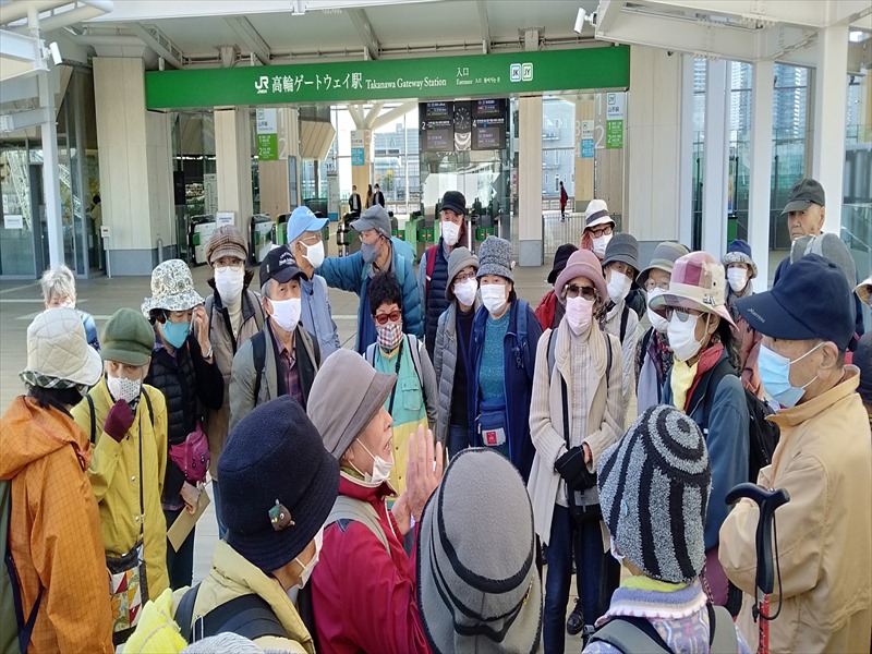 JR高輪ゲートウエイ駅10時30分→泉岳寺→高輪神社→11時30分高輪公園(昼食)→プリンスホテル貴賓館→13時本立寺→雉子神社→13時40分関東病院の公園→池田山公園→14時25分ねむの木の庭(旧正田邸跡)→五反田駅解散14時45分