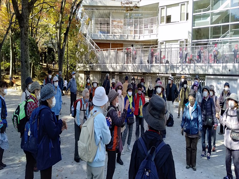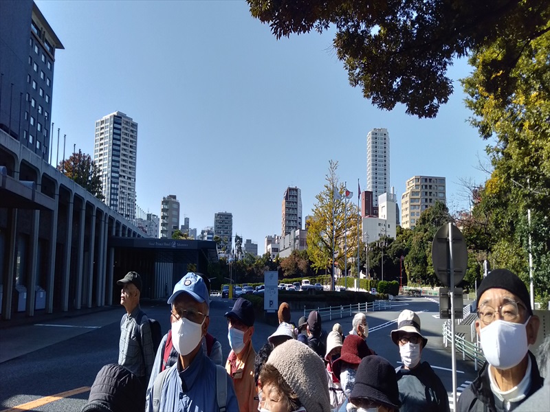今話題の新しい駅高輪ゲートウエイ駅集合で55名参加していただきました。本コースは大使館や高級住宅街も多く、見る価値の多いところが沢山あります。天候と紅葉に恵まれ、多い参加者にも関わらずスムースに予定した場所を歩くことが出来ました。参加者の皆様、協力者に感謝申し上げます。
