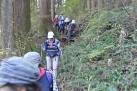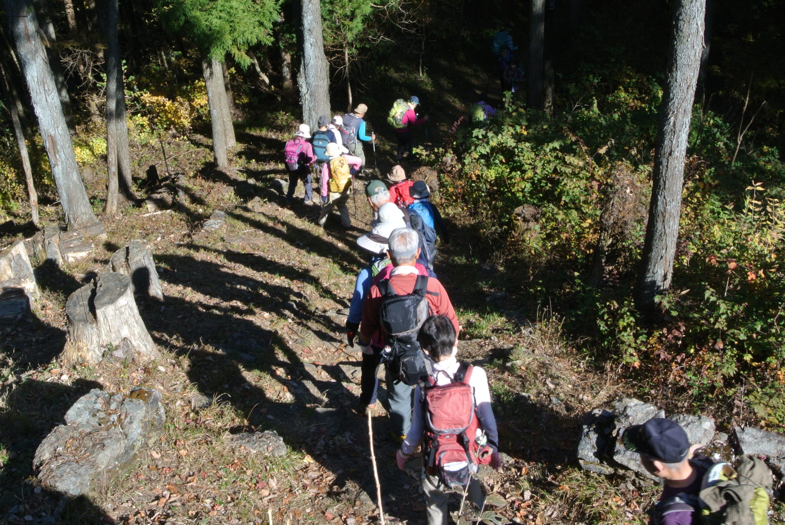 直下を除けば落ち葉を踏みながら我パーティの独占で快適に歩けた。山頂は相変わらず賑わっていましたがランチと展望を楽しみました。参加者の皆様お疲れさまでした。 佐野満喜子
