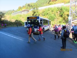 小仏行のバスは相変わらず混んでいましたが 紅葉の景色に満足。