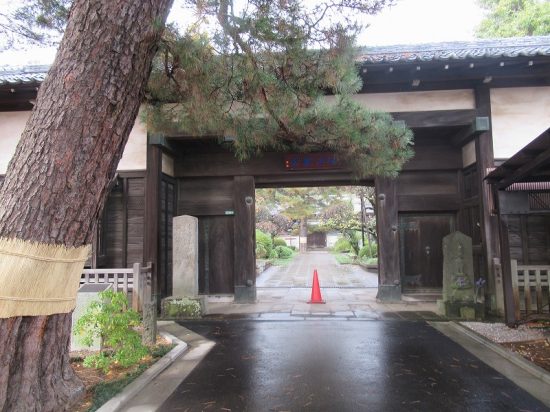写真の長屋門は勝海舟邸にあったもの。(写真は下見の時に写したもの。雨天だったので濡ています)