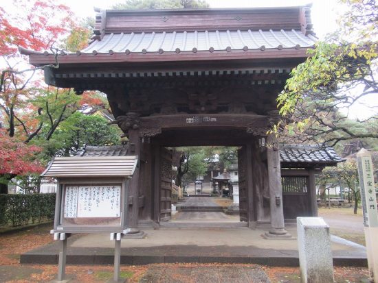 三宝寺山門 3代将軍徳川家光が鷹狩の際に立ち寄ったことから「御成門」と呼ばれています。