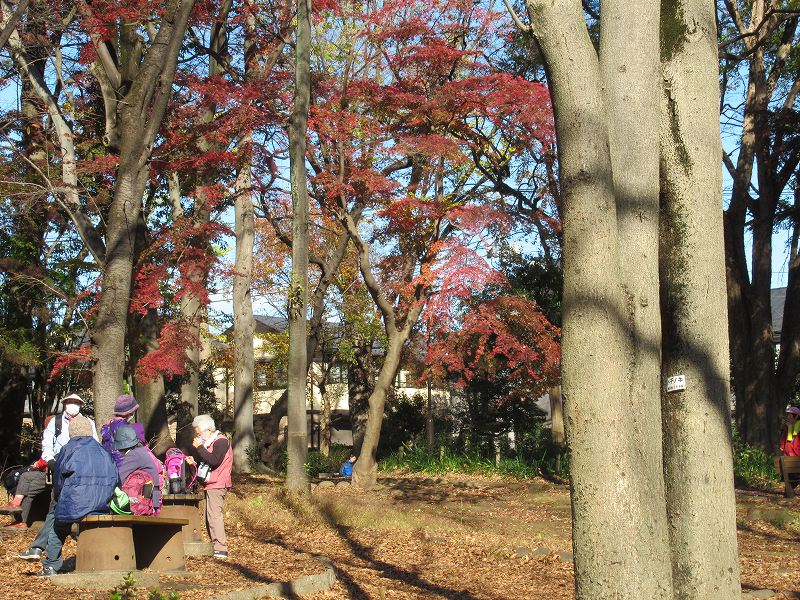 参加者の皆様お疲れさまでした。お天気に恵まれ、楽しいウオーキングができました。まだまだ紅葉が楽しめる初冬の公園歩きで、ちょっぴり歴史にも触れることのできるコースでした。