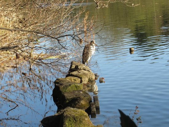 駅に向かう途中石神井池で水鳥が夕日を浴びて気持ちよさそうに羽を乾かしていました。