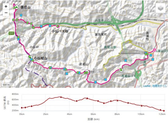 ▼コース : 小仏バス停 9:00 – 09:10 景信山登山口 – 10:50 景信山 – 11:40 小仏峠 – 12:00 城山(昼食) – 13:30 高尾山 – 14:20 稲荷山コース – 15:05 高尾山・清滝駅 – 15:10 高尾山口駅