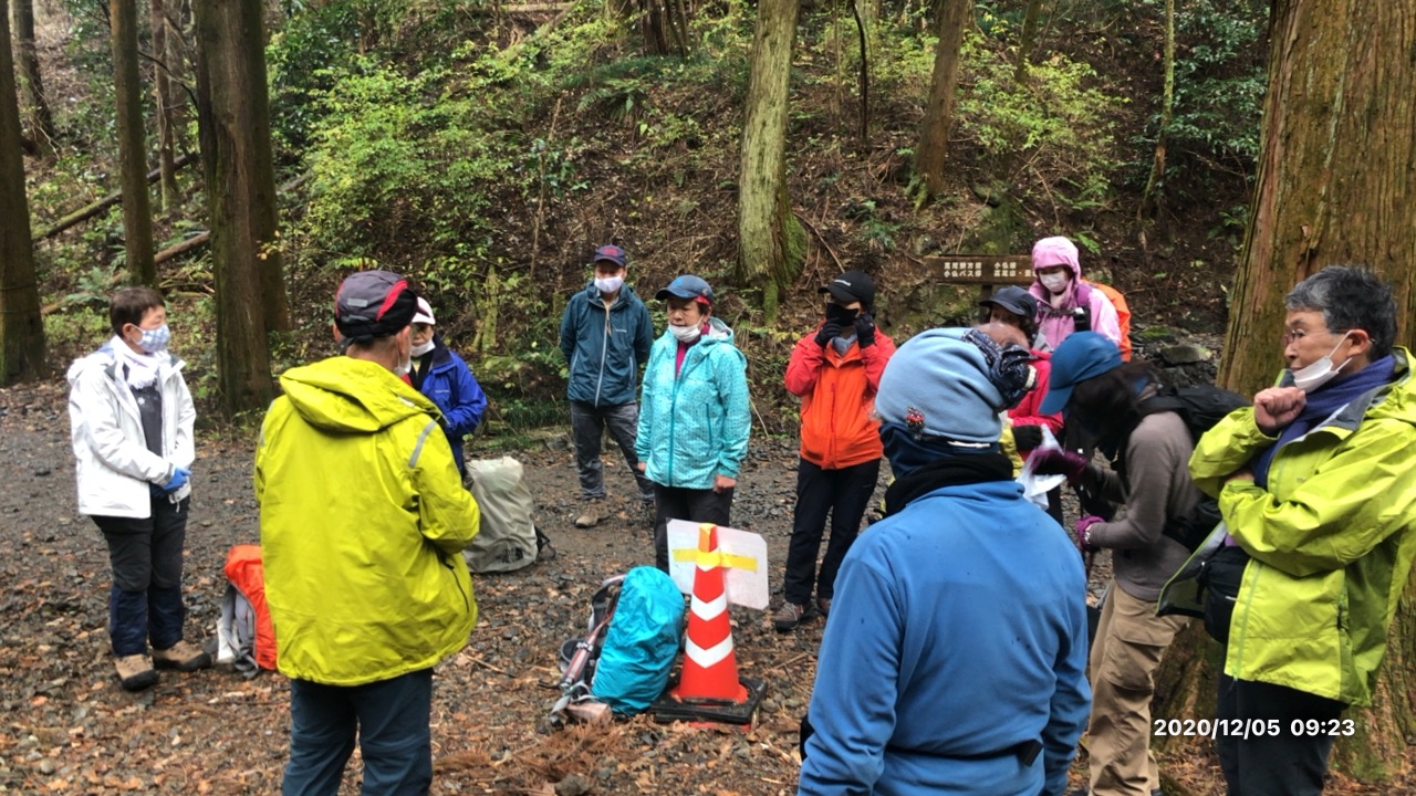 新型コロナウイルスが拡散状況の中、そして雨模様にもかかわらずご参加頂き有難うございました。歩行中もマスクの着用(アゴの下に)にご協力頂き、他のハイカーとのすれ違い時や休憩時には、素早くマスクを口に戻して感染予防に努められましたことに感謝します。皆様のご協力で予定通りに終える事ができ感謝いたします。
