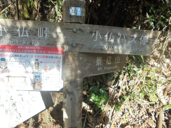 コース : 小仏バス停集合 景信山登山口9:45→小下沢分岐10:50→景信山11:20→小仏峠12:05→城山13:30→小仏峠14:00→小仏峠登山口14:40
