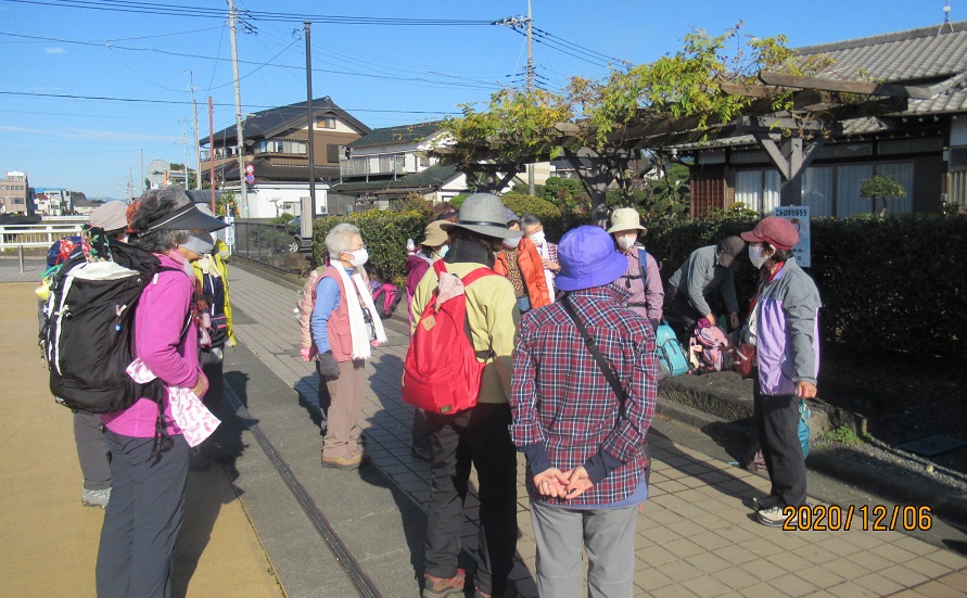 バス停前の広場でリーダの挨拶 そしてコースの説明