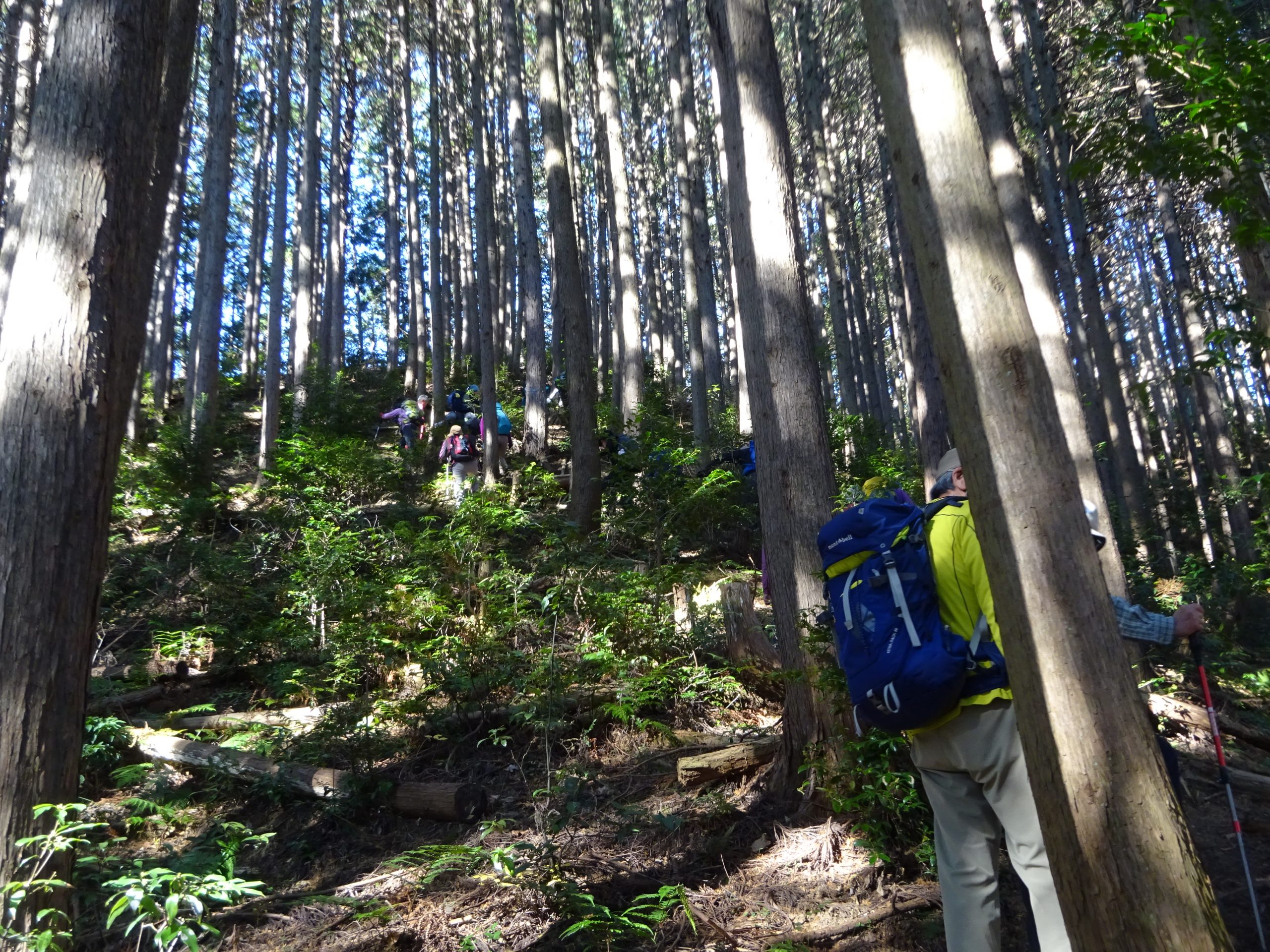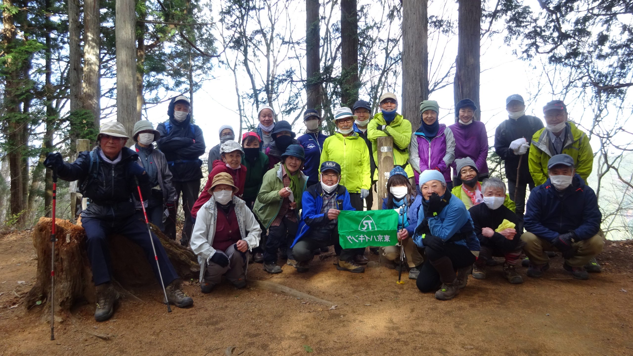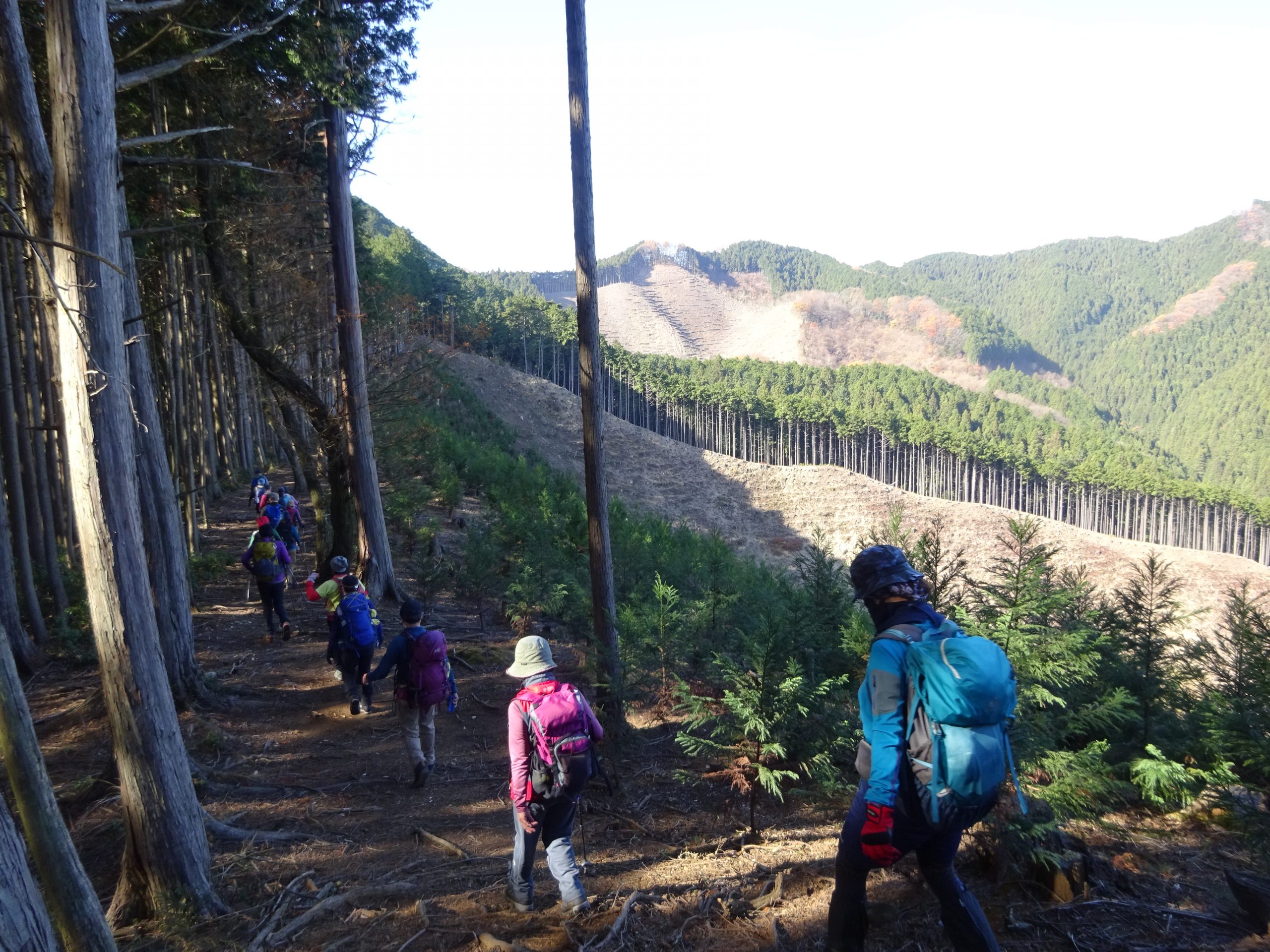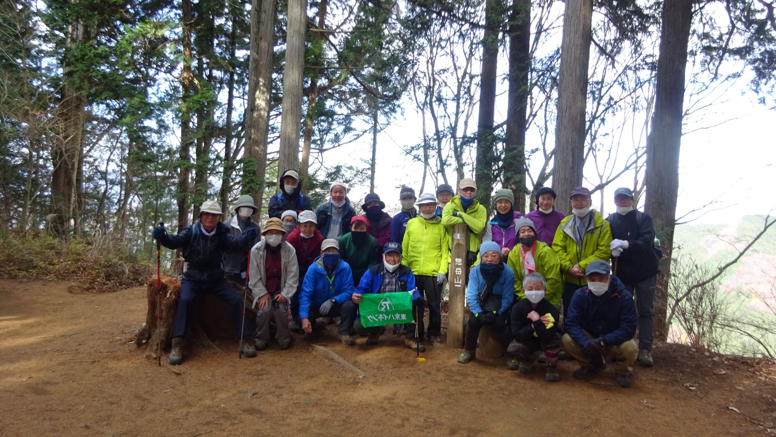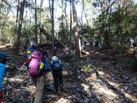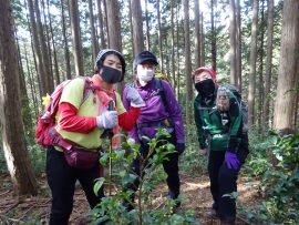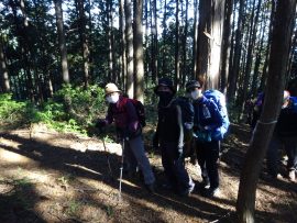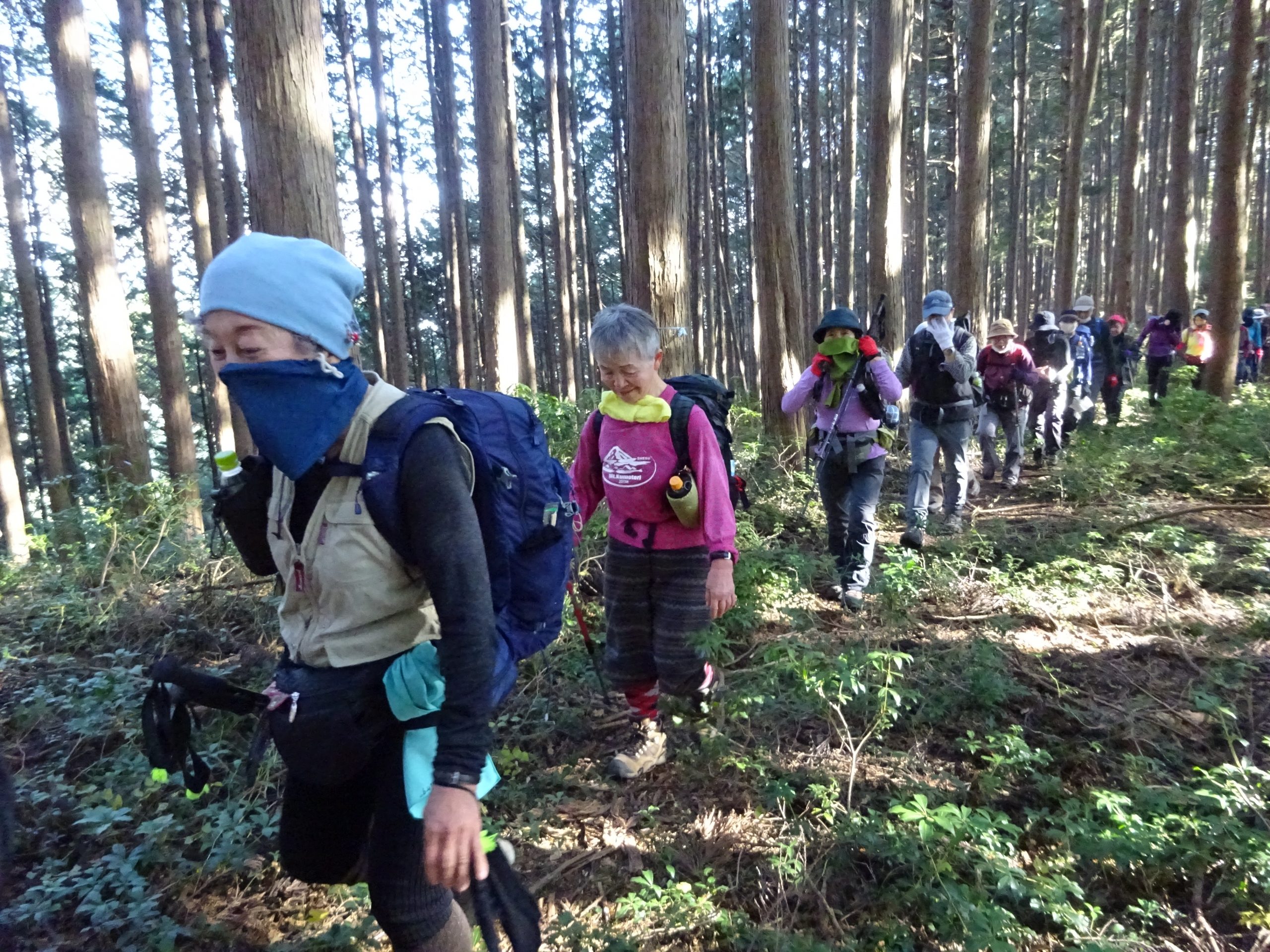 リーダーコメント:冬晴れの中、枯れ葉を踏みながら尾根をゆっくりと和気あいあいと歩きました。