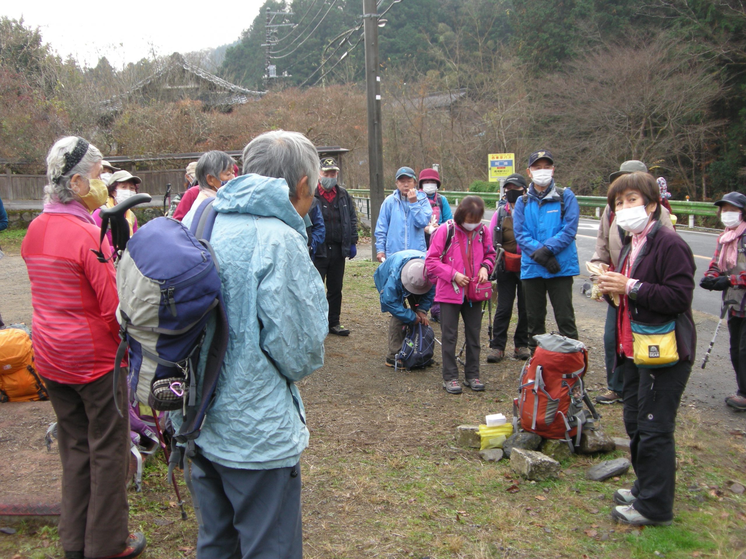 関場バス停にてリーダーの挨拶