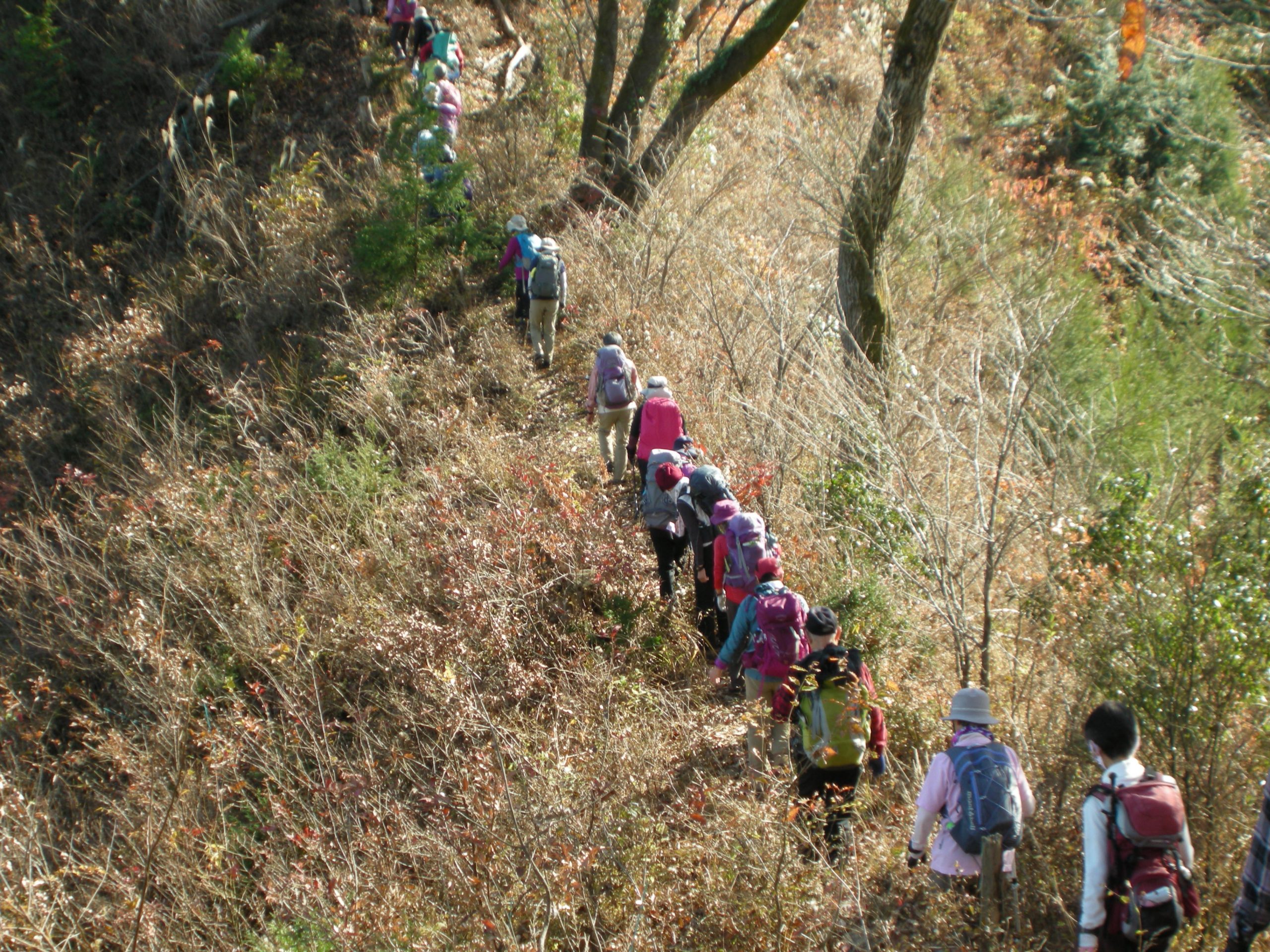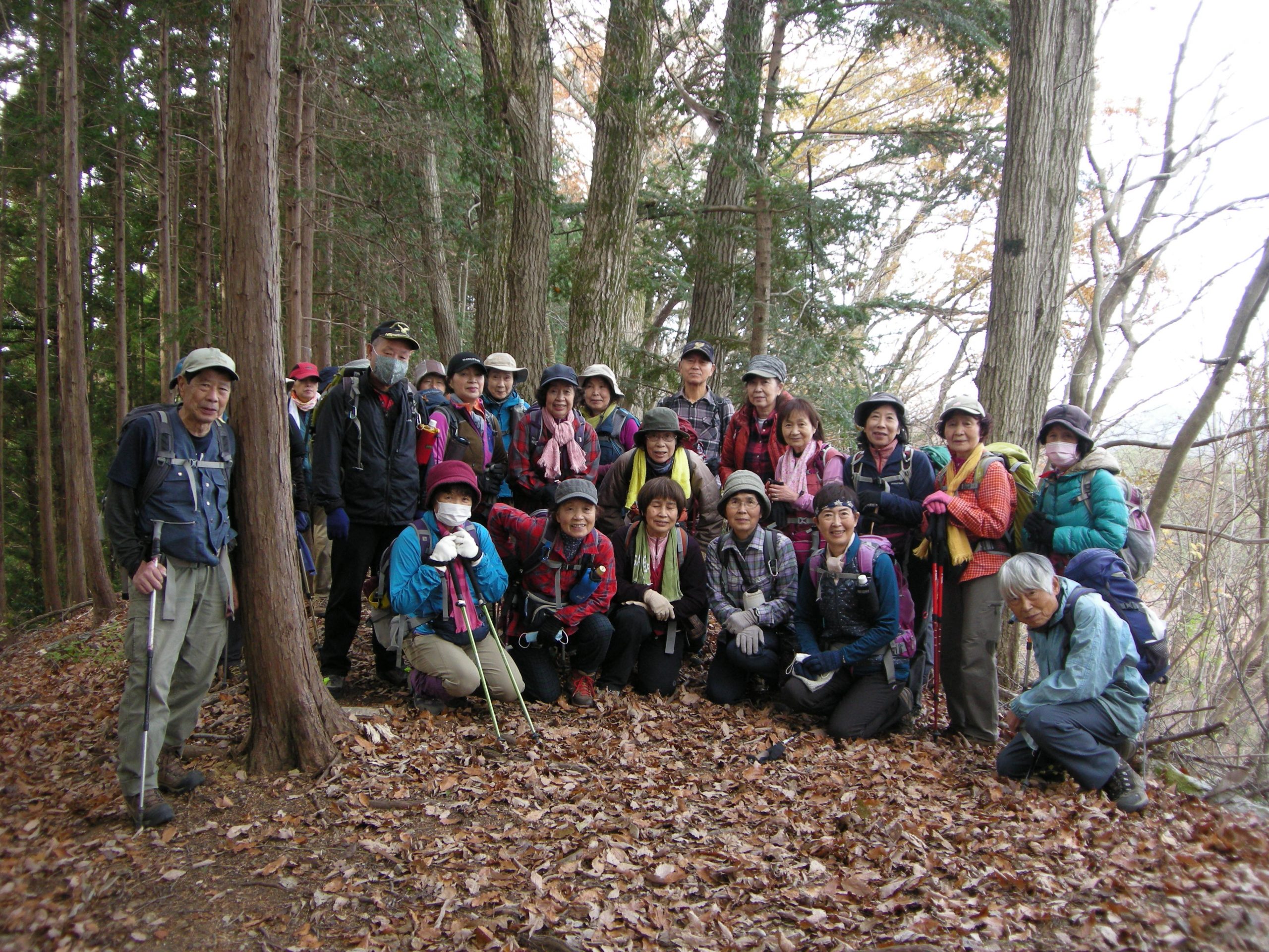 コメント:この時期、落ち葉を踏みながらの里山歩きは楽しい、今年最後の山行も何時もと変わらず安全で楽しい山行を無事終える事が出来大変嬉しく思います。これも参加の皆様、協力者、参加リーダーのご協力があればこそで感謝します。どうも有難うございました。 皆様、来年もどうぞ宜しくお願い致します。 健康に気を付けて元気で山歩きを楽しみましょう。 少し早いですが、皆様良いお年を!!