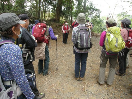 取付点(9:12)→495m峰(10:15)→弾左衛門ノ峰(10:45-11:00)→高留沢ノ頭589m峰(11:50-12:20)→宮尾神社解散(13:25)