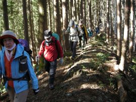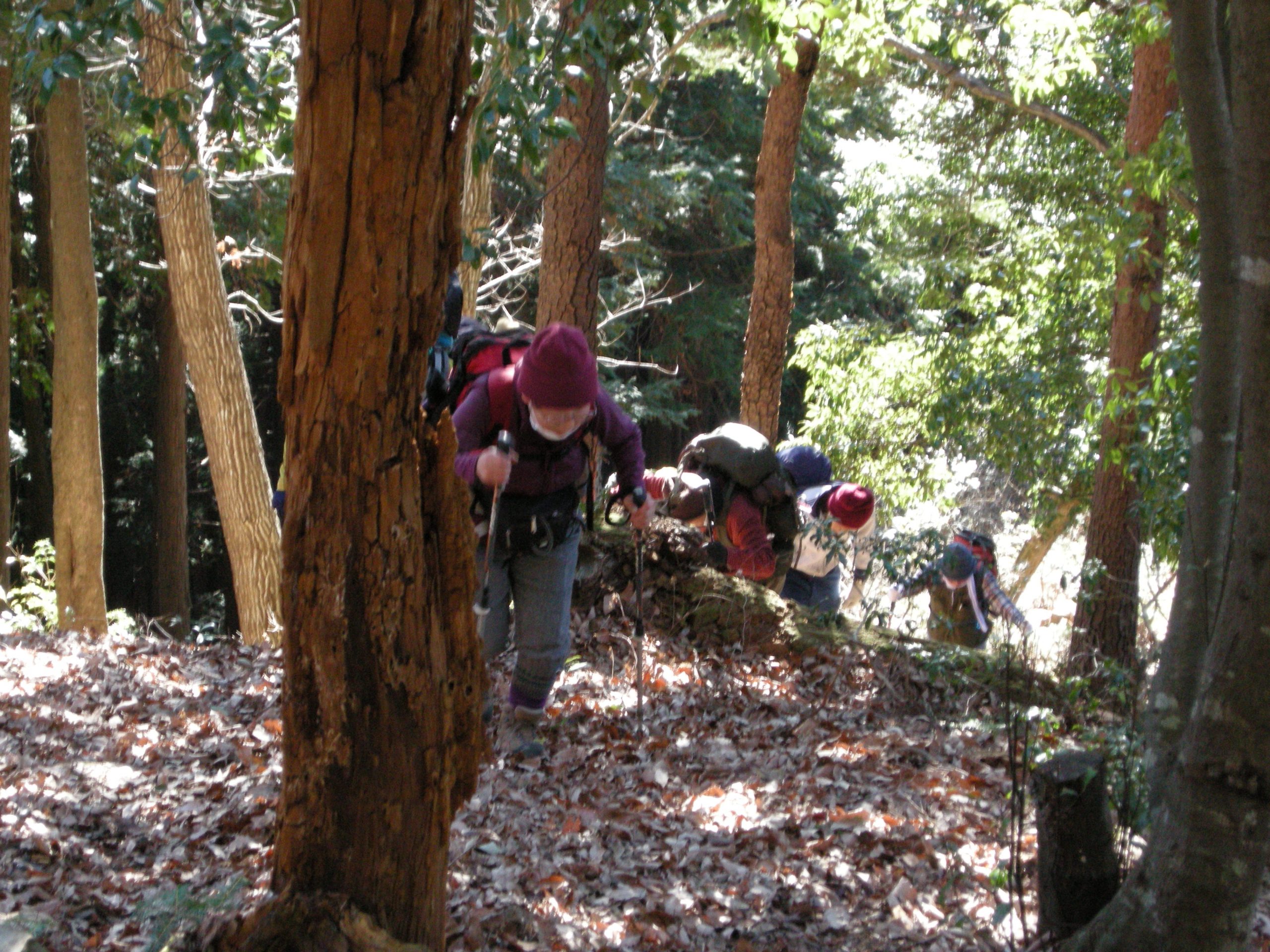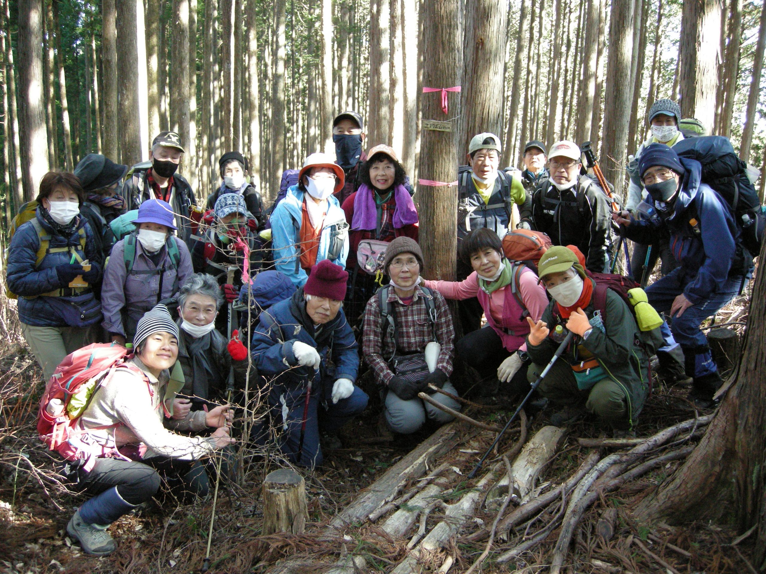 コメント:朝方は冷え込みましたが歩き始めると暖かく雲一つない絶好の山日和となりました。将門尾根に取付いてから山頂直下迄急登が続く。大根ノ山ノ神で山の楽しみの一つでもあるランチをゆっくり摂り下山、すぐに急下降が続くがメンバーは難なくクリア。参加リーダー、協力者、参加の皆様とお天気に感謝です。有難う御座いました。エノクボ山は静寂な尾根歩きを我々に楽しませてくれました。 佐野満喜子