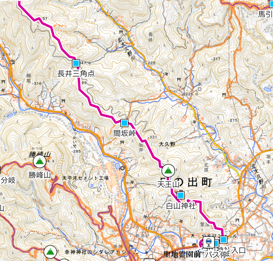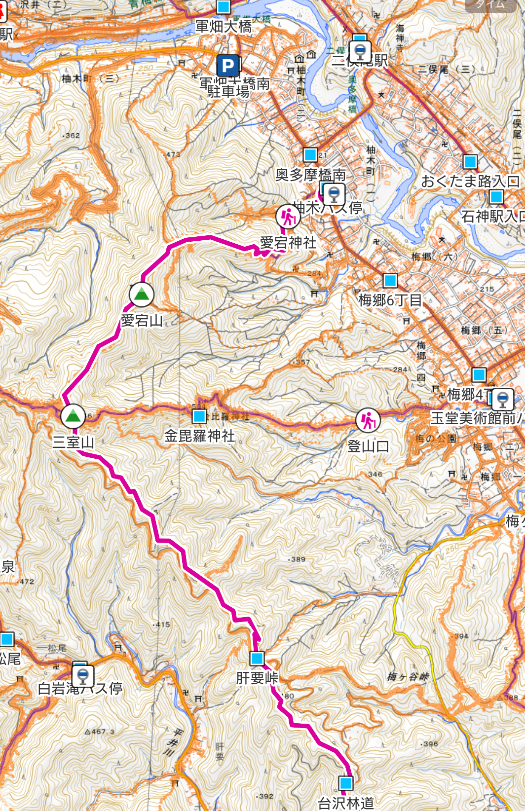 コース :武蔵五日市駅8:00ー(バス)-8:05多摩聖地霊園前ー8:10白山神社入口8:22