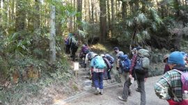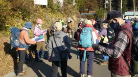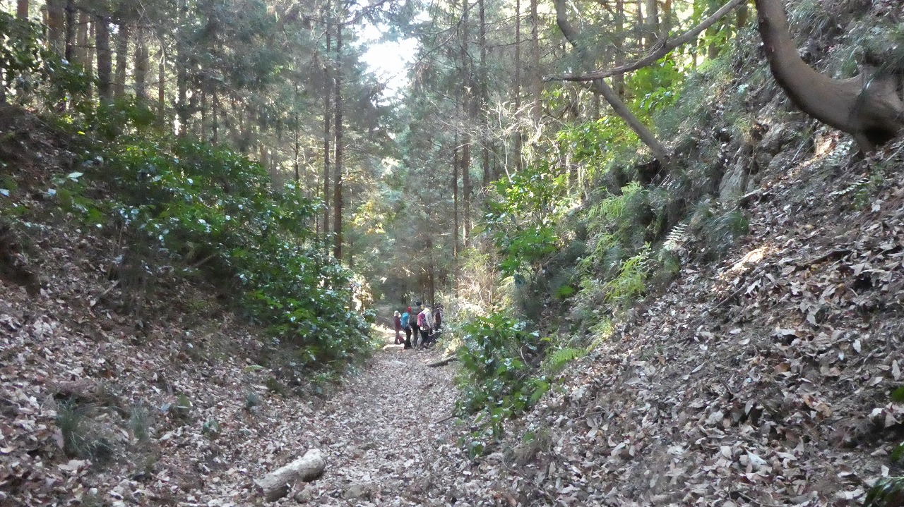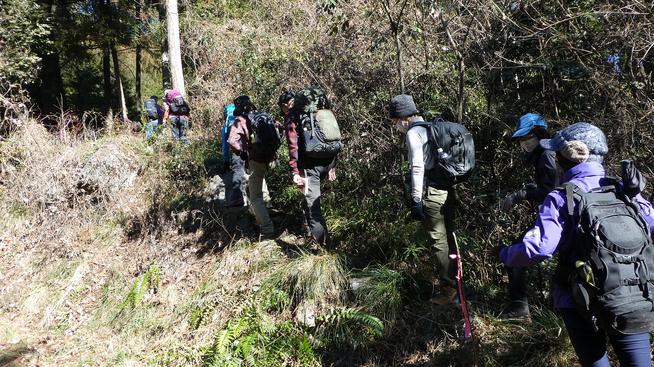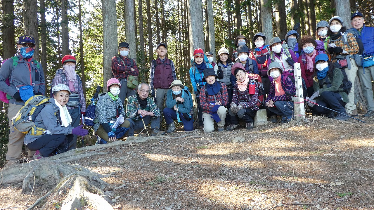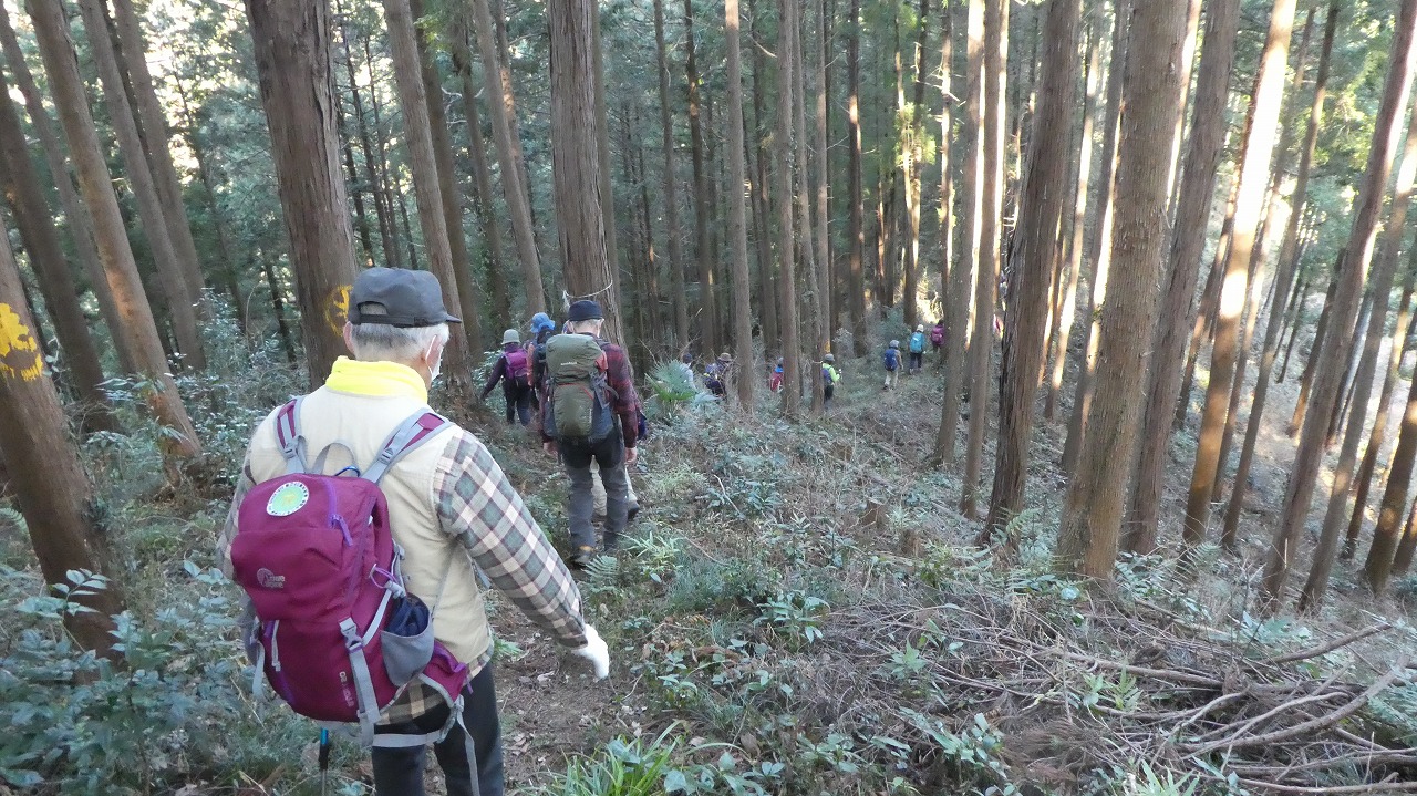 「会報予定にない駅到着後5分後発のバスに乗る作戦を立ててみた、各方々の電車中からのご協力と、改札口からのマジな走りで乗車完了。歩程30分の短縮に成功できた。今日のコースは展望には恵まれないが、地図読みの楽しさと、上を目指す登り感もあり、味わい深いコースと思った。