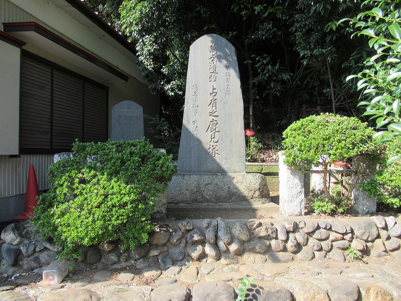 鳥居をくぐるとすぐに占肩の鹿見塚碑があります。古代は鹿の肩の骨を焼いて占いをしていました。
