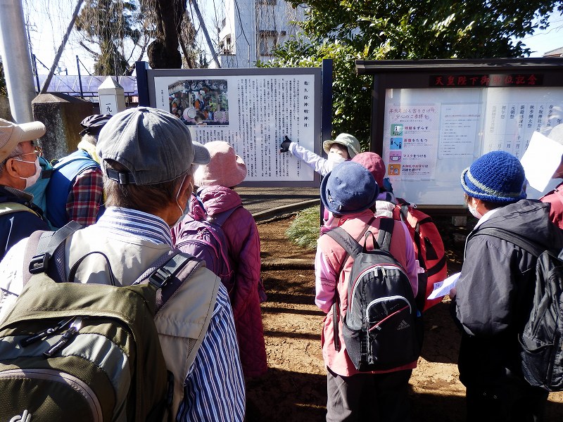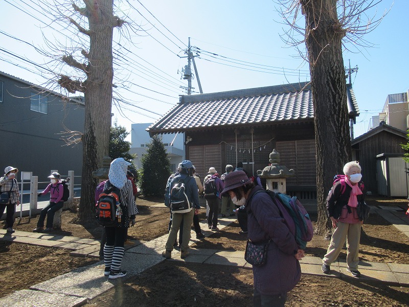 コース:東武東上線ふじみ野駅9:45集合 歩行開始10:00→角の常夜灯10:25→地蔵院10:40→亀久保神明神社・馬頭観音→鶴ケ岡八幡神社11:45→南台公園12:25(昼食)13:10→砂新田春日神社13:45→熊野神社14:15→浅間神社14:45→解散15:00