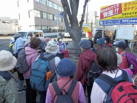 9:45 ふじみ野駅集合 朝の挨拶とコースの説明。 緊急事態宣言中の注意事項を確認しました。