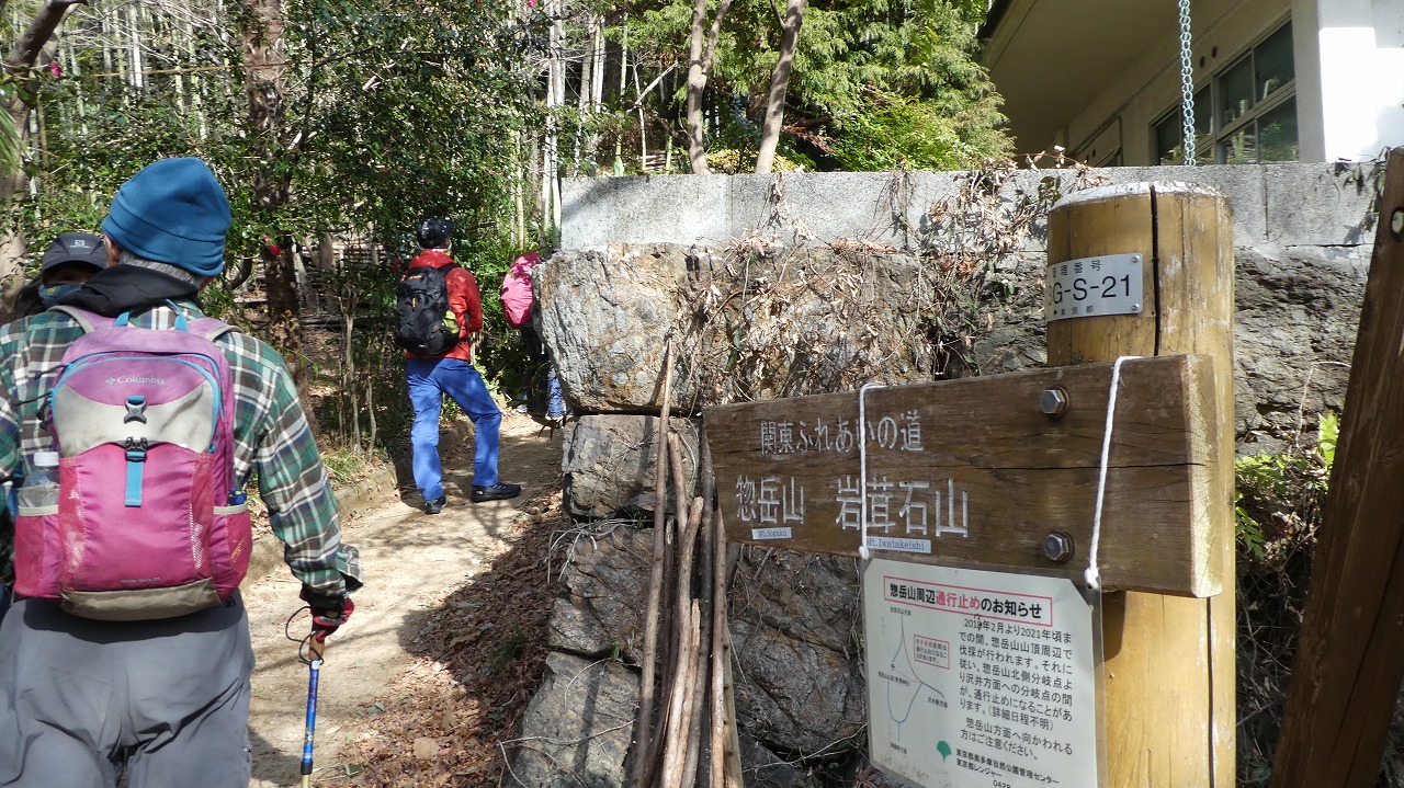 ながらのコース、標識無しの破線歩きを楽しみました。里では梅が満開、春を告げる福寿草が咲
