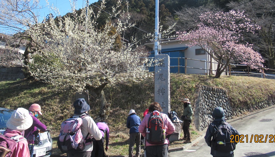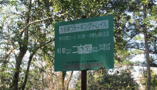 コース:武蔵五日市駅 9:25集合 9:40出発 → 高尾神社 10:00 → 網代城山 11:00 → 網代弁天山 11:30 → 昼食 12:00-12:30 → 雹留山 13:10 → 二条城跡 13:55 → バス停 14:30