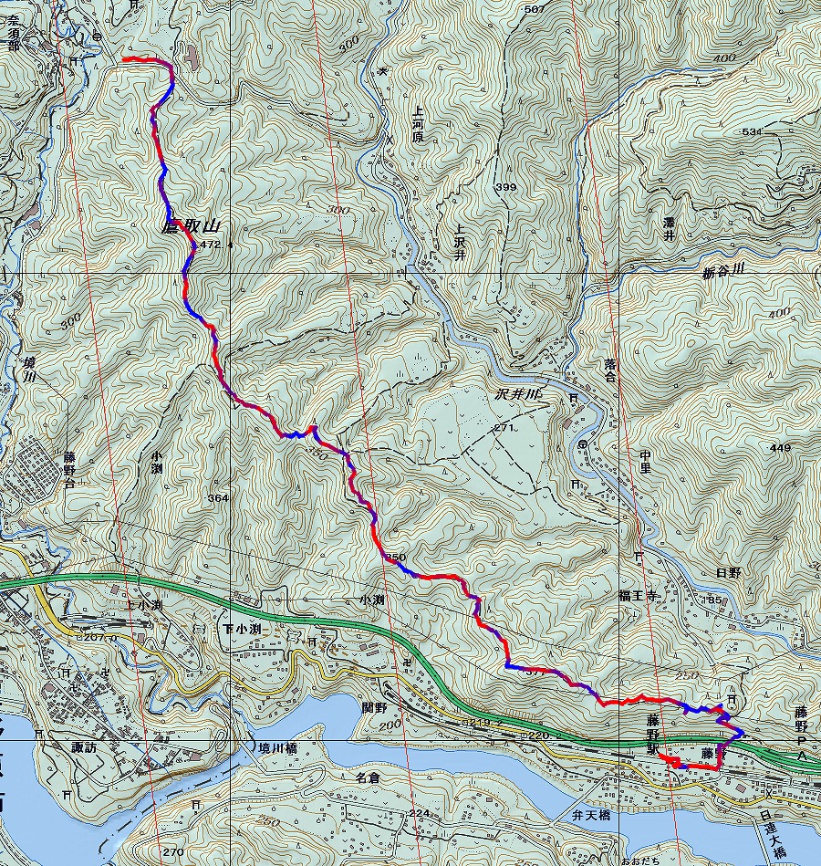 ▼コース:取付点10:20→鷹取山11:00~10→小渕山(昼食)12:00~40→岩戸山13:20~30→藤野駅14:10