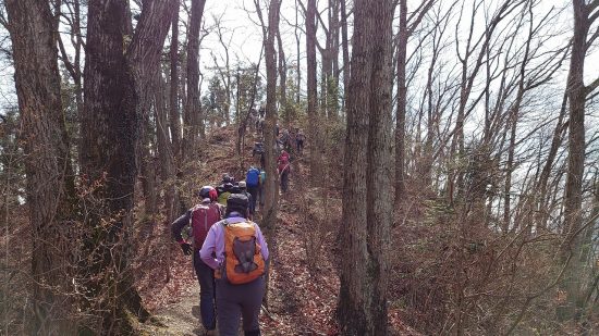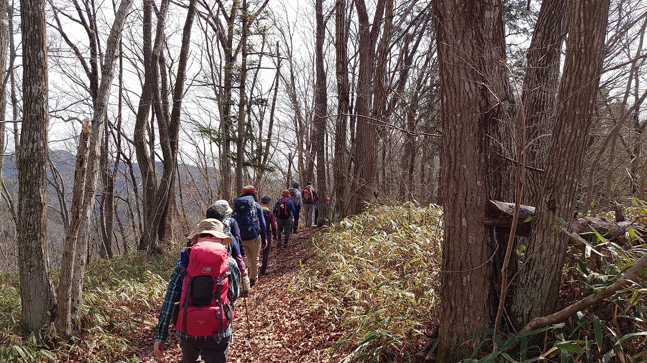 小渕山へと、僅かに芽吹きはじめた尾根道を進む